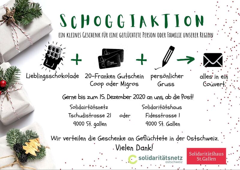 Schoggiaktion für geflüchtete Personen oder Familien unserer Region