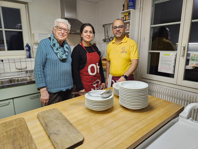 Die Reihe Internationales Kochen wird im Offenen Haus heuer zum vierten Mal durchgeführt. Gestartet wurde noch vor der Corona-Pandemie im Winter 2019/2020. Hinter der Idee steht die 81-jährige Dorothee Gerber, die im Offenen Haus als Freiwillige regelmässig für den Mittagstisch kocht. Da viele Ausländerinnen und Ausländer hier ein- und ausgehen, kam sie auf die Idee des Internationalen Kochens und stiess damit auf fruchtbaren Boden. Sie hat als Kind selber flüchten müssen und hilft heute anderen Menschen mit ähnlichem Schicksal beim Deutsch lernen. Dank ihrer klaren norddeutschen Aussprache kann sie Ausländerinnen und Ausländern bei mündlichen Fragen helfen. Sie unterstützt auch Saman Khammu, der in der katholischen Kirche in Engelburg die Lesung am Werkstags-Gottesdienst vorträgt. Die gelesenen Textstellen nimmt er an wöchentlichen Treffen mit, um sie mit Dorothee Gerber durchzugehen.