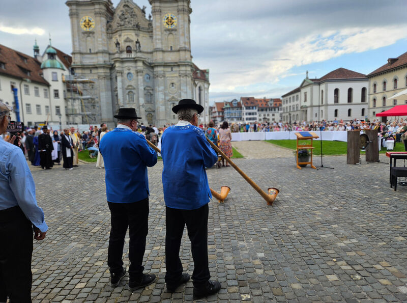 Die interreligiöse Feier zum Eidgenössischen Bettag, die am Sonntagnachmittag auf dem Klosterplatz stattgefunden hat, war ein grosser Erfolg mit vielen «Hühnerhautmomenten», die Hoffnung auf eine friedliche Zukunft der Menschen stiften. An der diesjährigen Feier hatten Menschen aus acht Religionen und Glaubensgemeinschaften am Runden Tisch Platz genommen und ihr Gebet vorgetragen. Die Klänge, die Farben und die Wahrnehmung der vielen Kulturen und Religionen in einem so dichten Moment war für die Teilnehmenden ergreifend. Ein derart starkes Zeichen für den religiösen Frieden und für die Solidarität aller Menschen ist einzigartig.