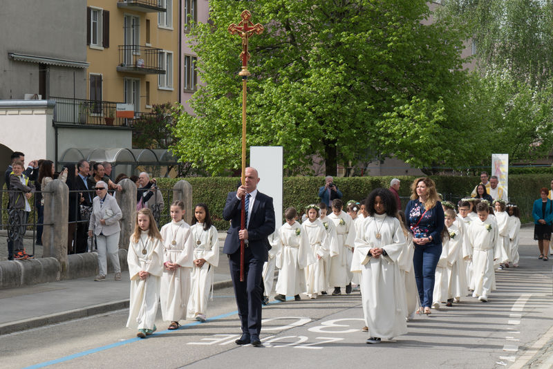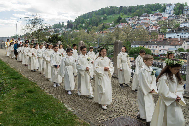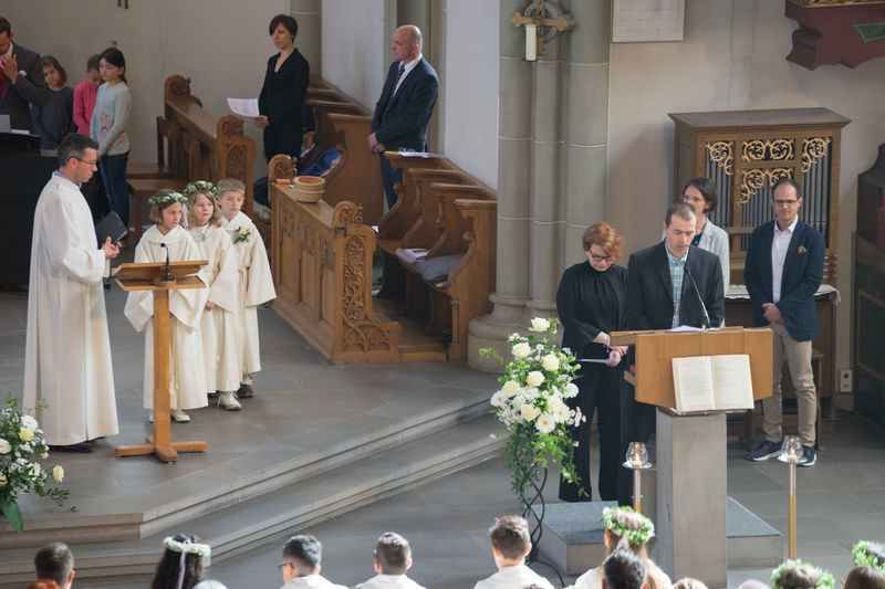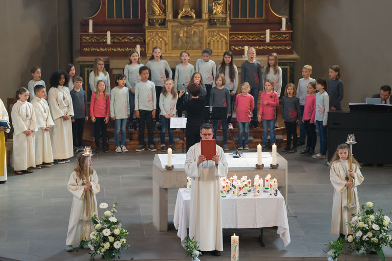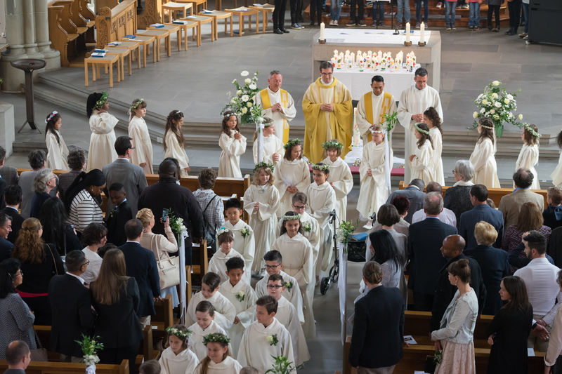 Die Erstkommunikanten der Pfarreien Dom und St.Otmar durften die Heilige Kommunion zum ersten Mal empfangen. Die 32 Kinder erlebten in der Otmar-Kirche einen festlichen Gottesdienst, der von der Domsingschule musikalisch gestaltet wurde.