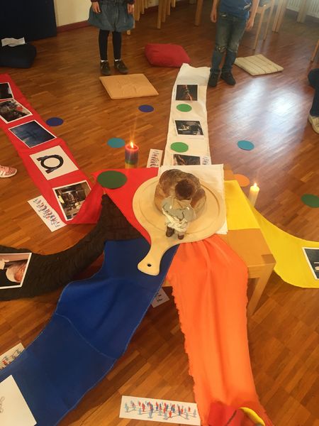 D’Chind findet ganz vill Bispill usse, wer alles muess mithelfe und mitschaffe und was alles nötig isch dezue: