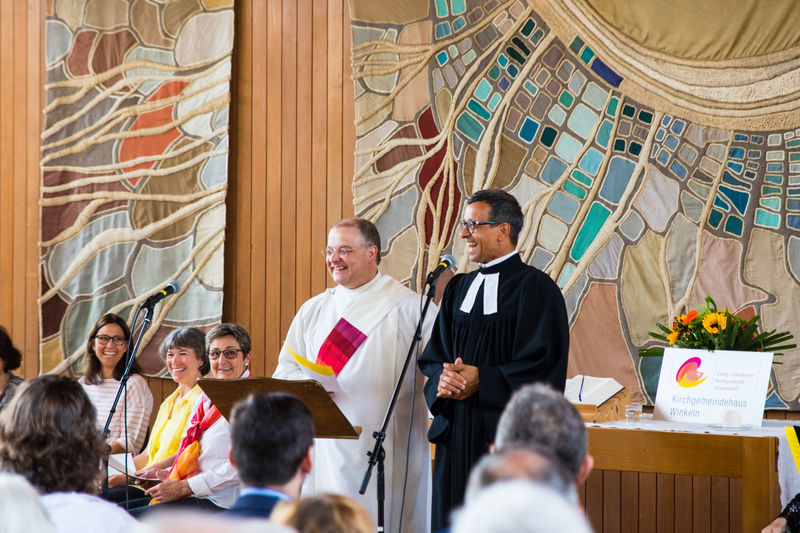Das Ökumenische Aufbruchsfest begann am Sonntag 27.5. mit einem Ökumenischen Gottesdienst im Reformierten Kirchgemeindehaus in Winkeln. Im Anschluss an diesen vielfältigen und bewegten Gottesdienst waren alle Teilnehmenden eingeladen, mit musikalischer Begleitung der Guggenmusik Wirus durchs Quartier zum zukünftig gemeinsam genutzten Pfarrheim zu ziehen und waren nach einem feierlichen Empfang zum Apéro riche eingeladen.