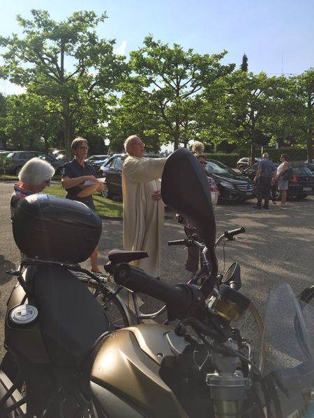 Am vergangenen Samstag wurden nach dem Gottesdienst verschiedene Fahrzeuge und deren Benutzer mit Weihwasser gesegnet.
