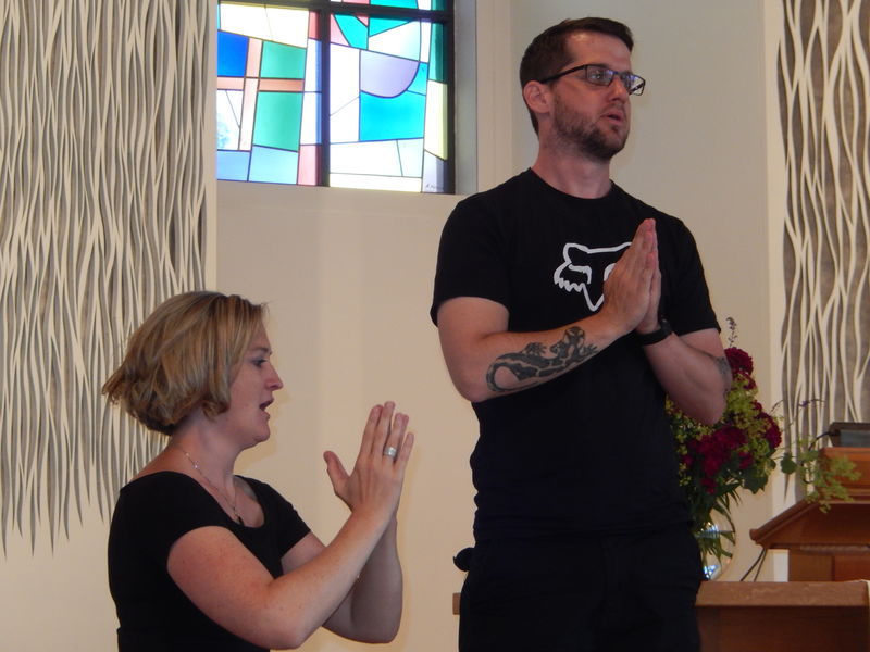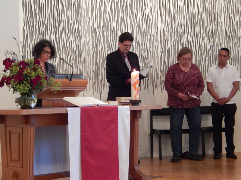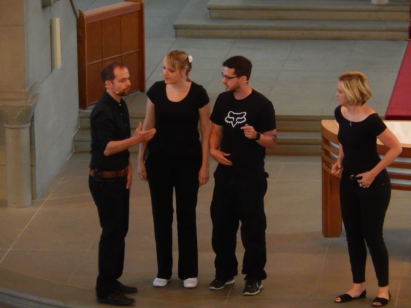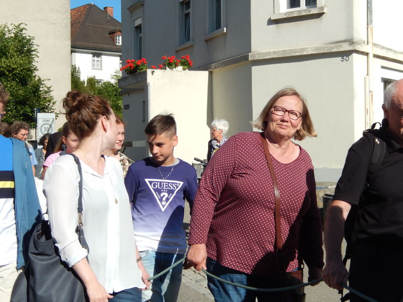 Wenn man ökumenisch der Reformation gedenkt, sieht das etwas anders aus als bei einem "normalen" Anlass. Am Nachmittag gab es ein spezielles Programm für Kinder und Familien mit Spielen und Werkarbeiten von "anno dazumal". Der Gottesdienst, der sich daran anschloss, begann in der katholischen Kirche unter Mitwirkung des Stegreiftheaters Tiltanic, wurde auf dem Weg zum Kirchgemeindehaus fortgeführt und mündete dort in einem Fest auf der Piazza St. Giorgio.
