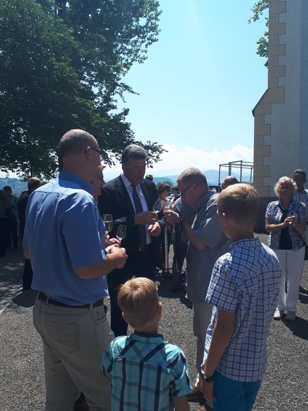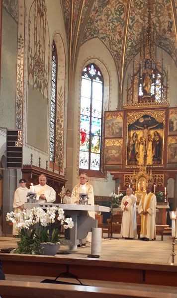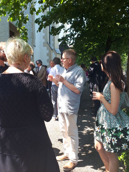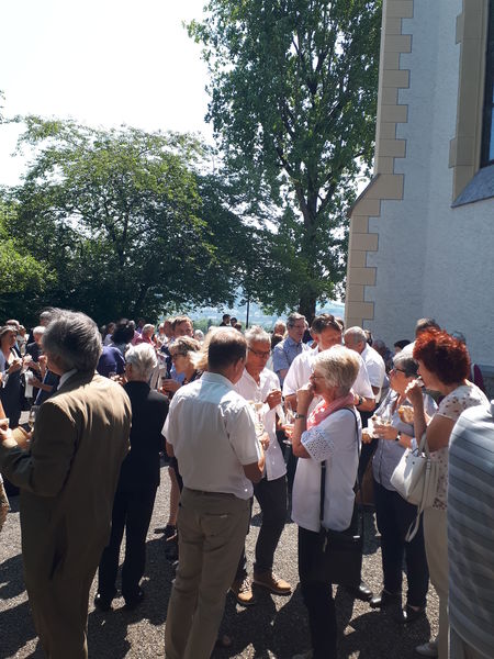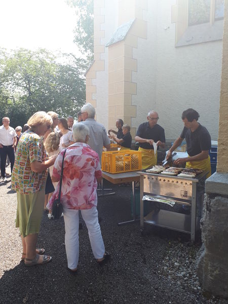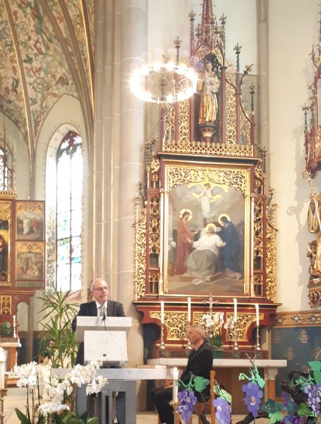 Der Festgottesdienst wurde durch die musikalische Umrahmung zu einem ganz besonderen Erlebnis. Der erweiterte Kirchenchor unter der Leitung von Joachim Oberholzer sang unterstützt von Birgitt Schwedes, Sopran, Cornelius Keller, Tenor und Christoph Hess, Bass-Bariton sowie instrumentaler Begleitung die Cäcilienmesse von Charles Gounod. Im Anschluss luden die Kirchgemeinden Abtwil-St. Josefen und Engelburg zu einem Apéro auf dem Kirchplatz mit Bratwurst und Getränken ein. So hatten alle Kirchenbesucherinnen und Kirchenbesucher auch noch die Gelegenheit sich persönlich von Heinz Angehrn zu verabschieden.