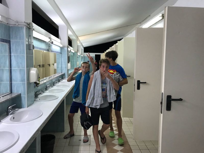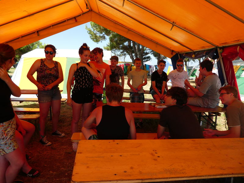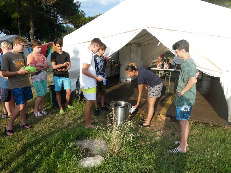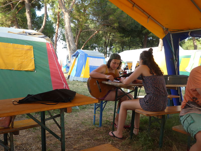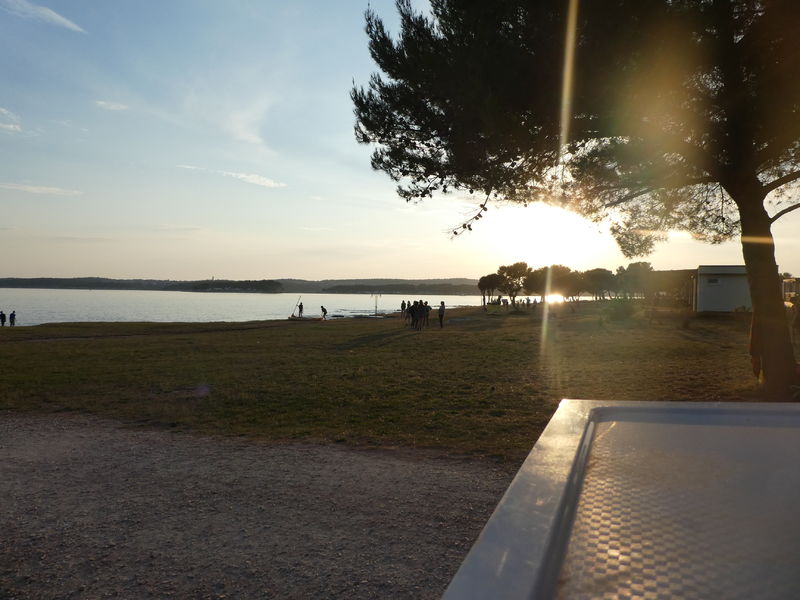 Da liegen wir nun, etwas erschöpft von der nicht enden wollenden Busfahrt über Nacht, am Strand unseres Camps in Medulin. Einen kurzen Schreckmoment gabs bereits in Lindau: Der Bahnhof lag in so weiter Entfernung von unserem Busabholplatz, dass wir diesen zu Fuss niemals rechtzeitig geschafft hätten. Also wurde die ganze Gruppe kurzerhand in Taxis verfrachtet und die pünktliche Weiterreise war gesichert.