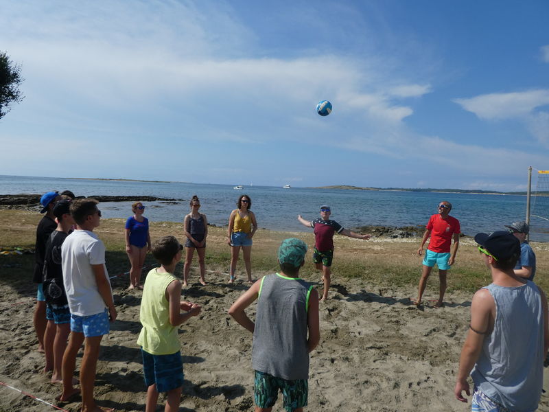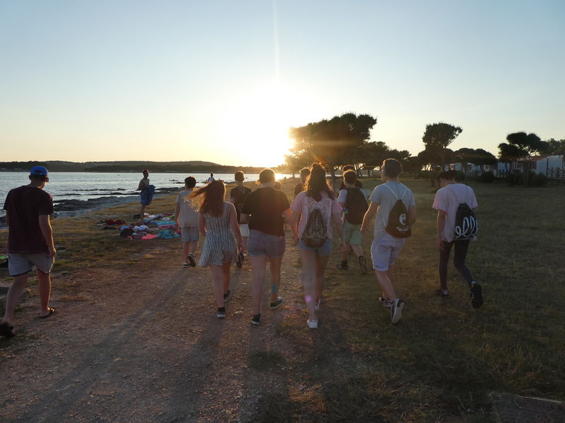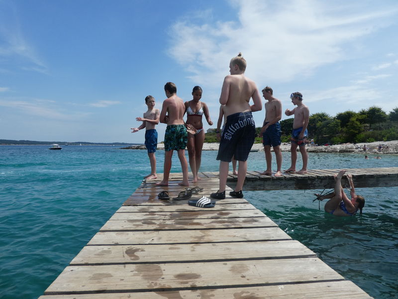 Nachdem wir in der letzten Nacht etwas Schlaf nachgeholt hatten, standen heute verschiedene Spiele auf dem Programm, die uns als Gruppe zusammen geschweisst haben. Auch bei einem gewöhnlichen „Schittliverband“ hatten wir es sehr lustig, aber heiss wars. So musste auch wieder eine Abkühlung in den Pools und im kristallklaren Meer sein. Ein Abendspaziergang in romantischer Sonnenuntergangstimmung führte uns zur Promenade in Medulin.