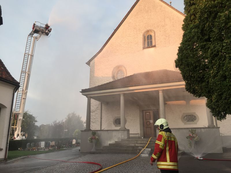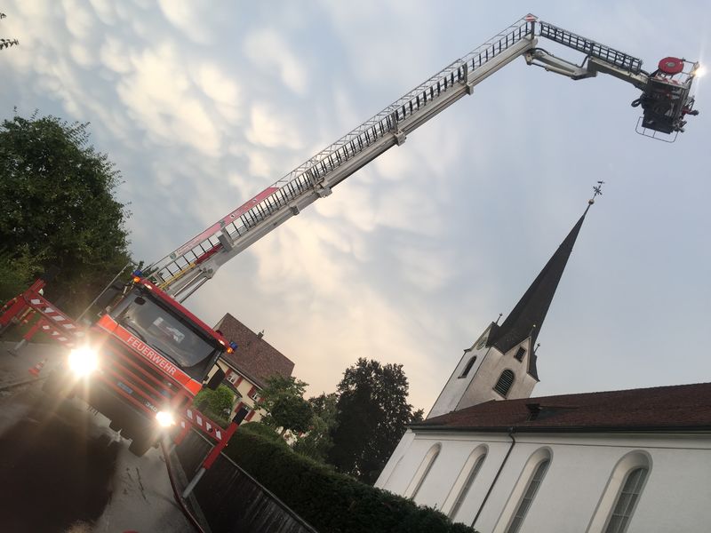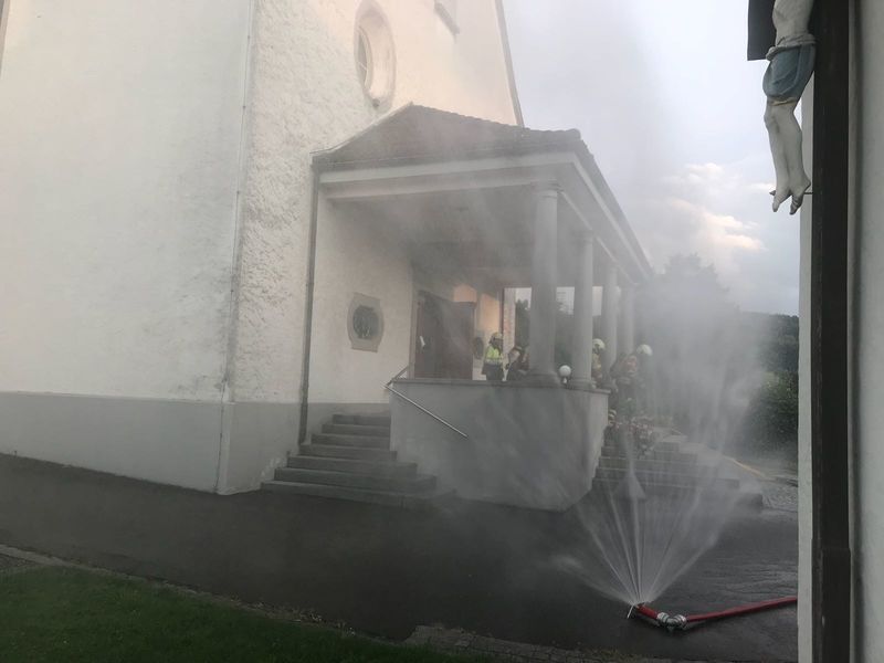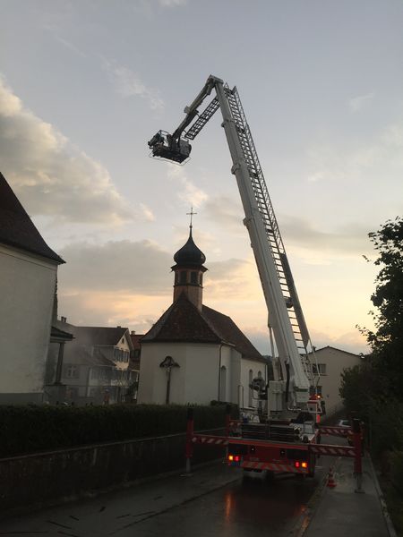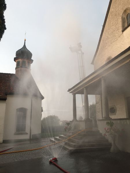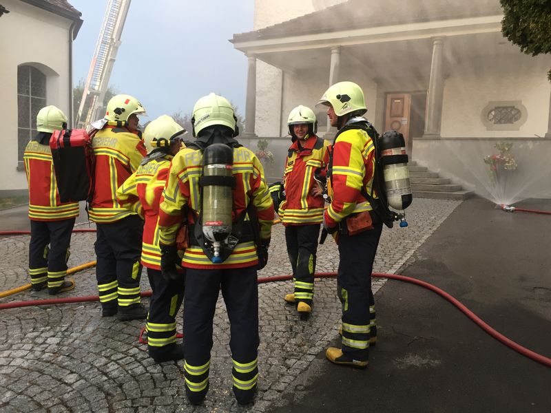 Wir sind alle froh, dass das Ganze nur eine Übung war.... und die Ulrichskirche noch unversehrt den Dorfhügel ziert.