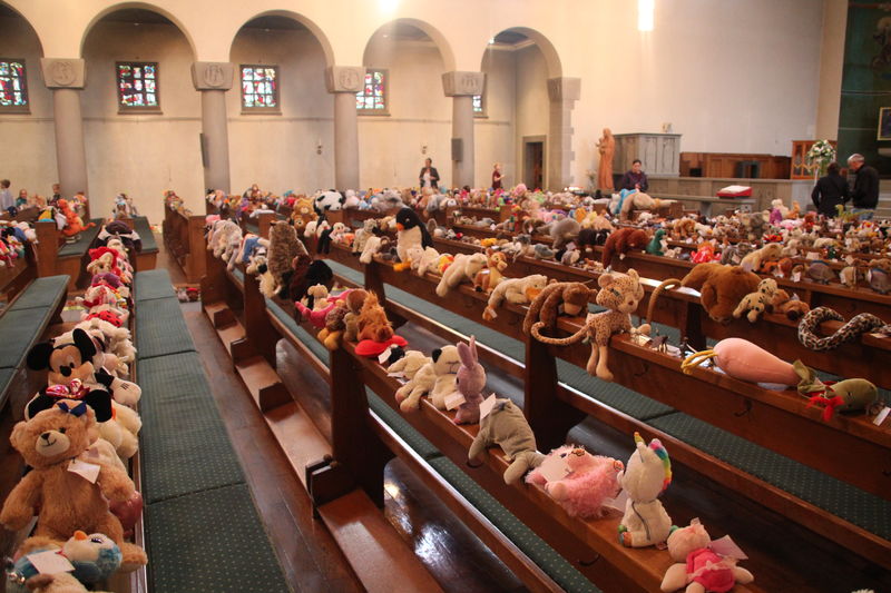 Am Sonntag 2. September 2018 gelang in der Kirche Heiligkreuz ein Weltrekord der besonderen Art. Zwischen 400 – 500 Eltern und Kinder brachten insgesamt 3701 Kuscheltiere in die Kirche. So wurde die Kirche zur Arche, die allen Tieren Schutz gibt.