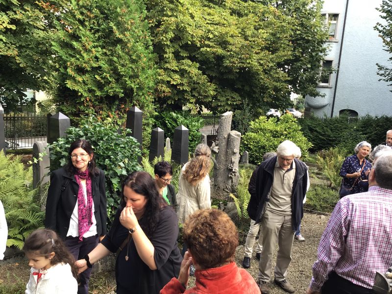 Zwischen dem Riethüsli und der Halden besteht eine fundamentale Verbindung: Vor mehr als 30 Jahren wurde das ehemalige Haldenkirche abgebaut und im Riethüsli wieder aufgestellt. Diese Verbindung war der Anlass, am Bettag eine Wanderung quer durch St. Gallen für Gross und Klein anzubieten. Nach dem Eintreffen mit frischem Kaffee am Klosterplatz führte ein Stationenweg zum Thema "Mein St. Gallen: Danken-Busse-Beten" von dort aus über das Tempelackerpärkli und den alten jüdischen Friedhof in der Habenbuchstrasse zur Haldenkirche. Dort klang der bunte und ereignisreiche Vormittag - wie soll's in St. Gallen anders sein - mit einer Bratwurst aus.