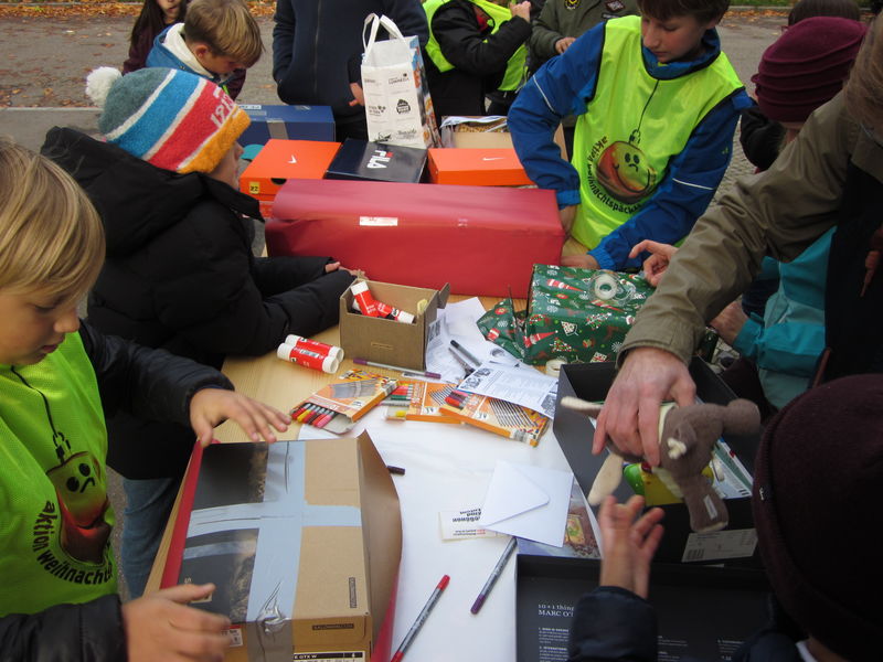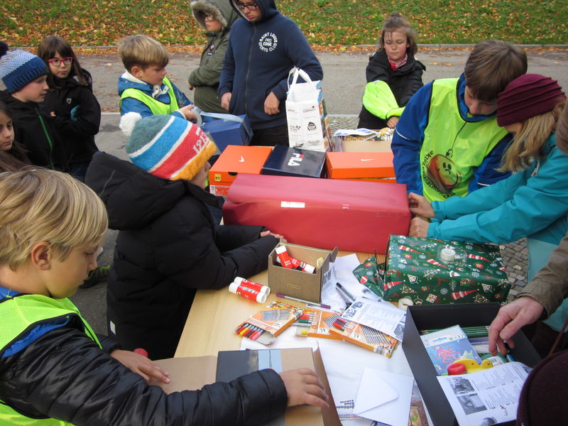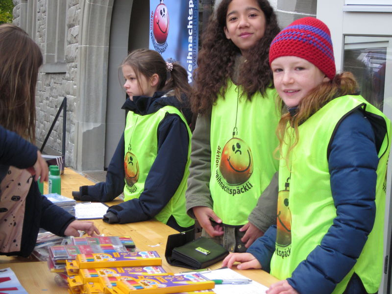 Aktion Weihnachtspäckli für Moldawien. Allein an einem Tag wurden mehr als 38 Päckchen gepackt und viele Taschen mit Waren wurden gespendet.