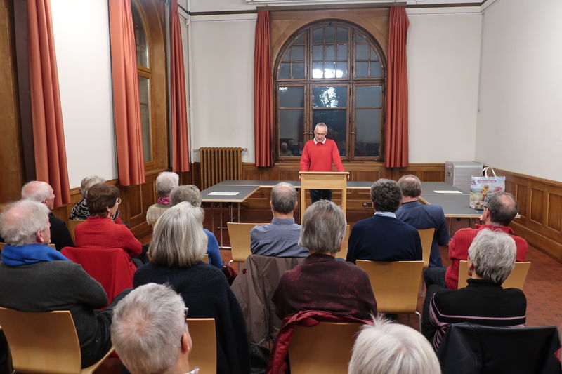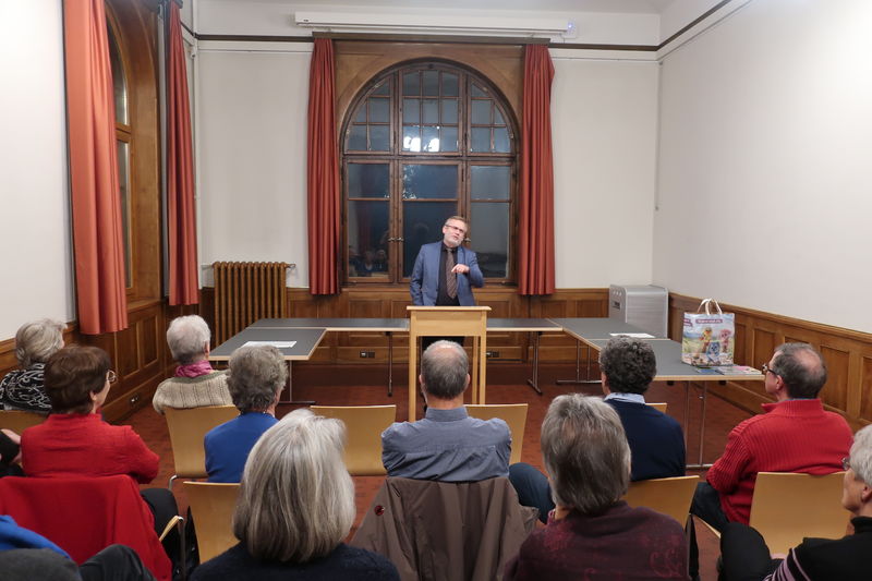 Christoph Sigrist, Pfarrer am Grossmünster in Zürich, versuchte am Freitagabend aufgrund seiner biografischen Spuren und theologischen Grundlagen das politische und soziale Wirken des Gemeindeammannsohnes von Wildhaus als Reformator in Zürich zu beleuchten. Im Rahmen des TimeOutProgramms der Kirchen Stephanshorn, Halden, Neudorf, Grossacker und St. Fiden erlaubt er Interessierten drei Perspektivenwechsel, die sich lohnen: einen wirtschaftlichen, einen pazitistischen sowie einen emanzipatorischen. In seiner spannenden und humorvoll-kritischen Art führten uns die Persektivenwechsel zu Dilemmata und Situationen in unserer heutigen Zeit. Hat sich seit Zwingli wirklich so viel verändert?! Ein weiterer kleiner Leckerbissen wartete an diesem Abend auf die Interessierten: der Stadtarchivar Marcel Mayer stellte einen originalen Brief von Zwingli an Vadian vor.