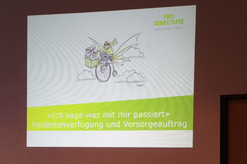 Im Pfarreiheim Winkeln fand heute der Informationsanlass zum Thema „Patientenverfügung und Vorsorgeauftrag“ statt. Als Referentin eingeladen war Cornelia Scheffold, Pro Senectute Stadt St. Gallen. In ihrem Referat erörterte sie die wesentlichen Merkmale dieser Vorsorgeinstrumente und beantwortete zahlreiche Fragen aus dem Publikum. Insgesamt 90 interessierte Frauen und Männer folgten der Einladung des Programms 60plus im Westen zu diesem informativen Anlass.