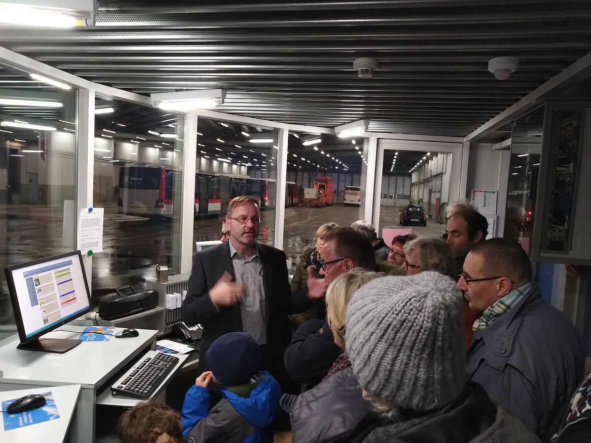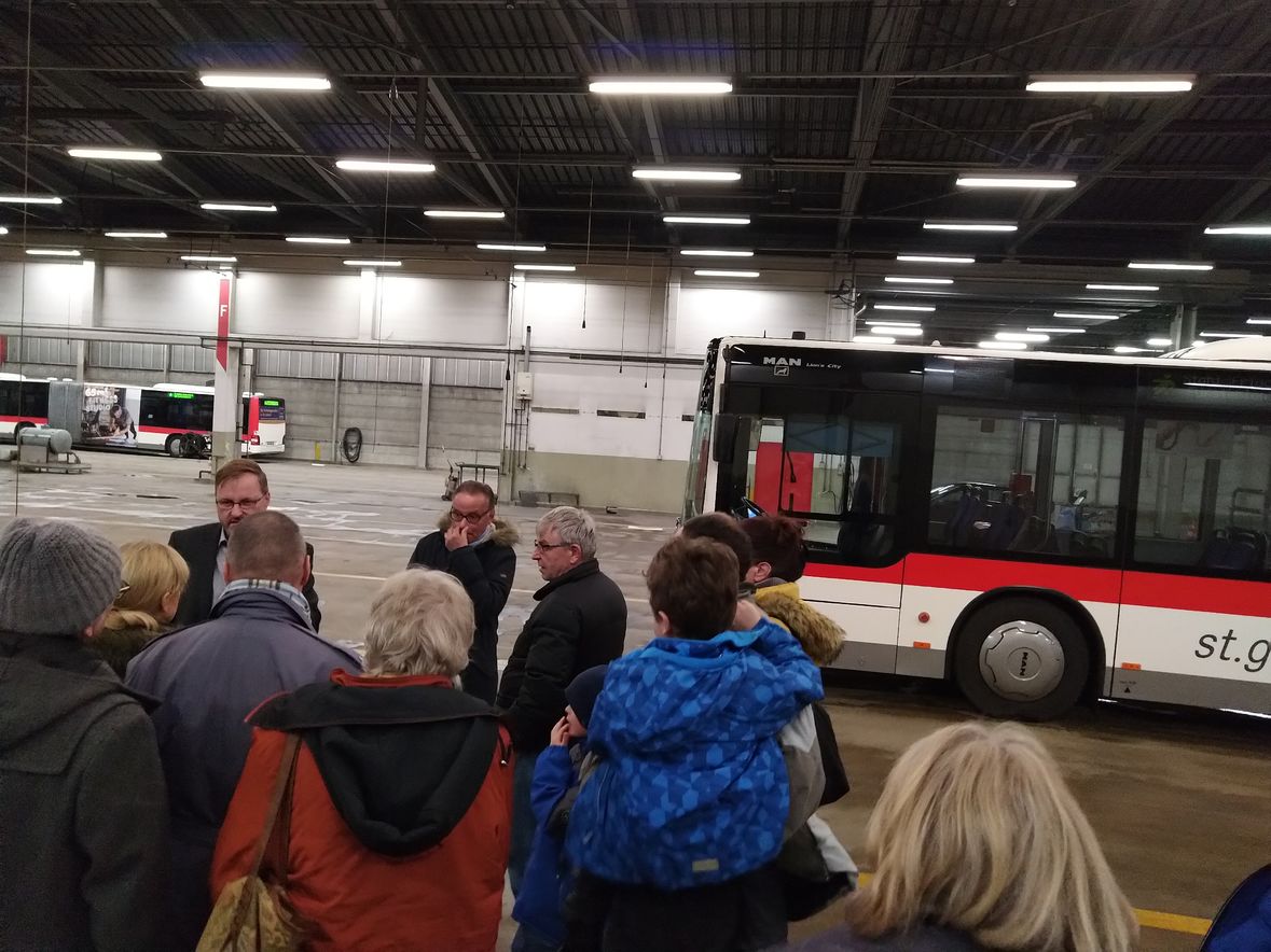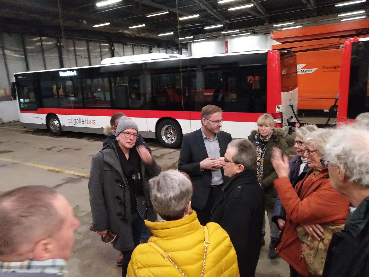 Auch die Busse der VBSG gehen einmal „schlafen“ – nach einem langen Arbeitstag haben auch sie eine Pause verdient. Wie diese Pause aussieht und wo die Buse „schlafen“ gehen, zeigte uns Herr Michael Ausburger, Leiter Betrieb VBSG. Gemeinsam mit ihm konnten wir im Rahmen des TimeOutProgramms der Kirchen St. Fiden, Grossacker, Neudorf, Stephanshorn und Halden die Leitstelle, die Werkstatt, das Pneulager, die Bus-Einstellhalle sowie die Wasch- und Tankanlage besichtigen.