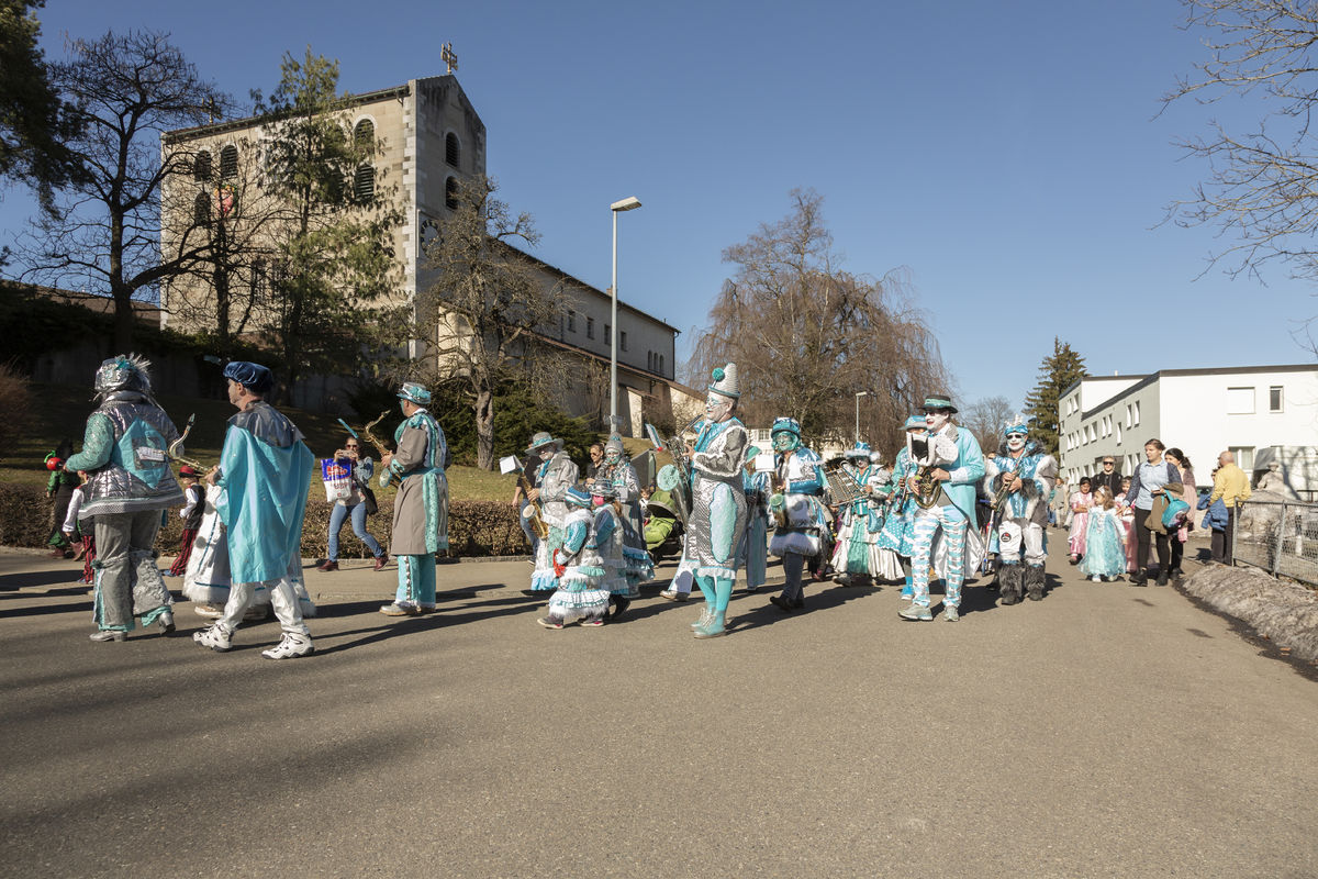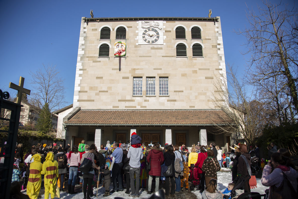 Johann Baptistli Wettach, vor fast 300 Jahren an der Langgasse geboren, lockte auch dieses Jahr 250 maskierte Kinder und Erwachsene an. Ihm zu Ehren, der dem Quartier Heiligkreuz den Namen gegeben hat, zeigten alle ihre Zähne. Sie streckten die Zunge heraus und empfingen dafür Bonbons oder Schneebälle. Die Ad Hoc Gugge aus Rotmonten begleitete die Kinder auf dem Umzug und lud zum Konzert ein. Zwei discjockey der Frauengemeinschaft tanzten mit den Kindern auf der Bühne während die anderen mit Berlinern einen neuen Energieschub gaben.