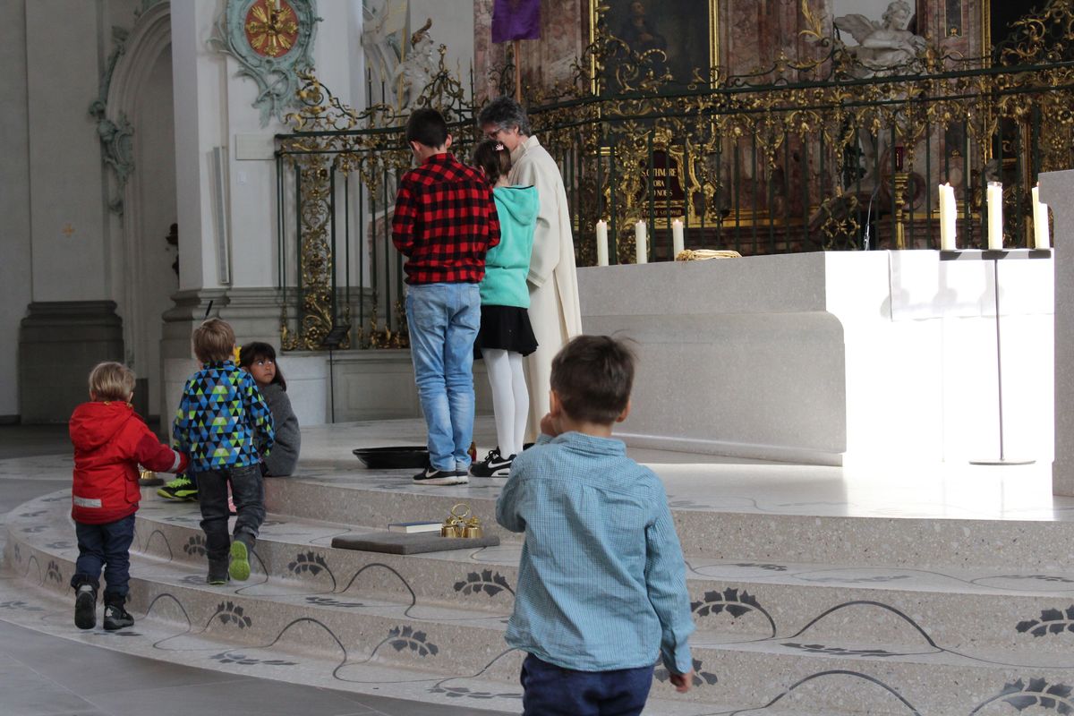 Dieser Gottesdienst ist so gestaltet, dass sich auch Familien mit ihren Kindern angesprochen fühlen. Eine einfachere Sprache, stimmige Lieder und einige kindergerechte Elemente tragen zum Gottesdienst mit Familien bei. Für die Kleinen gibt es Kinderbücher und eine entsprechend eingerichtete Kinderecke im Kreuzgang, wo die Eltern oder Angehörige den Gottesdienst per Lautsprecher mithören können.