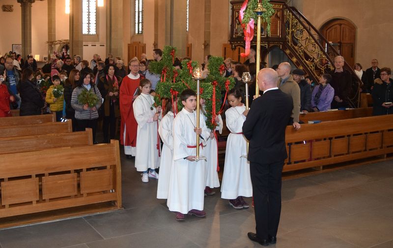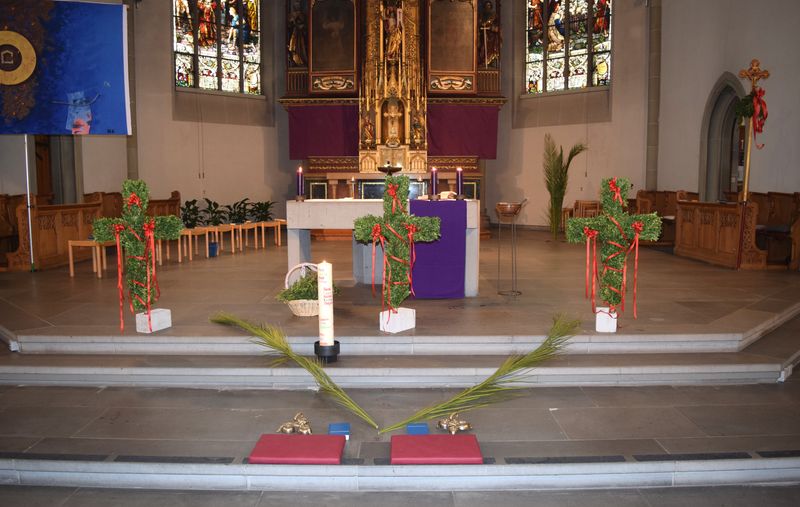 Im Familiengottesdienst an Palmsonntag wurde fröhlich gesungen und gejubelt! Erstkommunionkinder hatten zusammen mit ihren Eltern Palmsträusschen gebunden und diese zum Jubelruf im Gottesdienst geschwenkt. Mit Freude wurde dabei an die feierliche Ankunft Jesu in Jerusalem gedacht. Unterstützt wurden sie musikalisch von Trompete und Orgel.