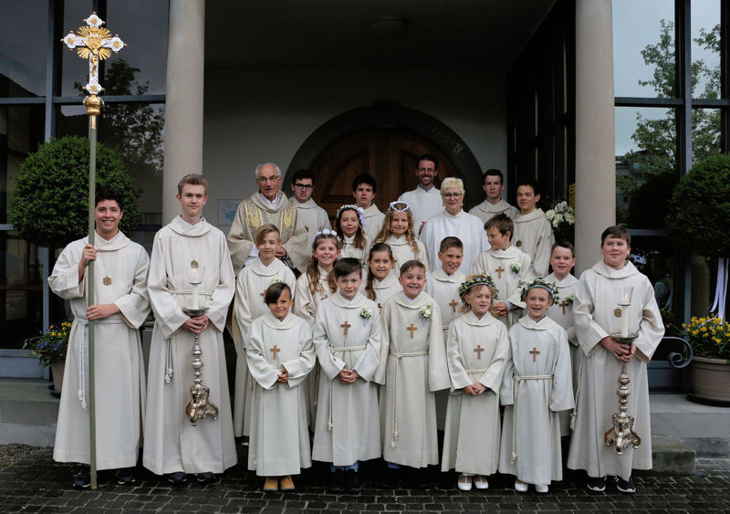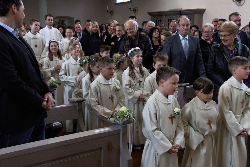 Am 28. April 2019 durften 13 Kinder die 1. Kommunion feiern. Musikalisch gestaltet wurde der Gottesdienst vom Familien- und Kinderchor, Kirchenchor und Musiklehrpersonen der Musikschlue Gaiserwald. Anschliessend waren alle zum Apéro im Pfarreiheim eingeladen.