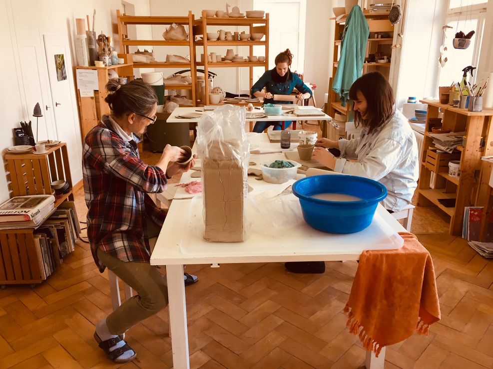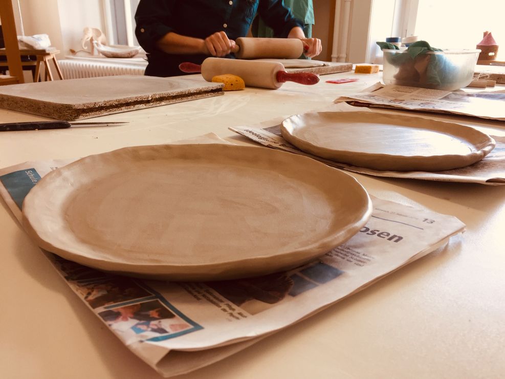 Mit den Händen wurde mal wieder so richtig "geschafft" und unter ihnen ist Wundervolles entstanden. Ausgerüstet mit Ton, Formen, Messerchen und Wahlholz haben wir das Geschirr, Teller und Tassen, für d’Werkstatt, das Klein-Café an der Kirchgasse 16, das im April öffnet, hergestellt und bunt glasiert.