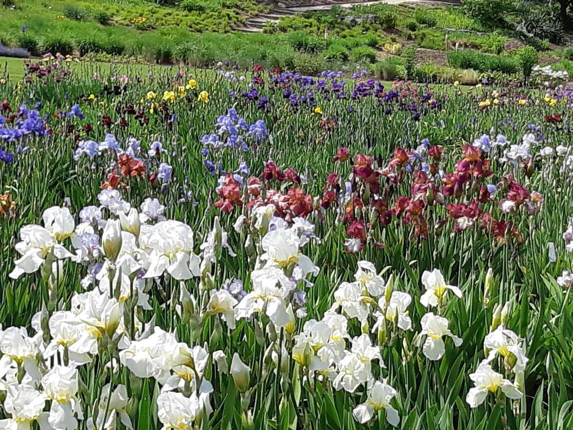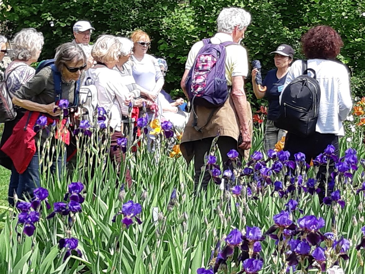 Die Teilnehmenden am Time-out-Ausflug fanden sich unversehens mitten in einem Blütenmeer: In den Meriangärten in Basel standen die Iris-Kulturen in voller Blüte. Die Stiftung verfügt über die grösste Iris-Sammlung der Welt. Wer zwischen den Beet umherging, konnte sich kaum satt sehen an der Vielfalt an Farben und Formen.