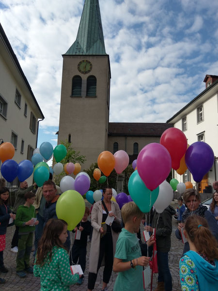 Zum Abschluss des diesjährigen Erstkommunionweges fand ein Familiengottesdienst zum Thema Gott Danke sagen statt. Es war eine Stimmungsvolle feier bei schönsten Sonnenschein liessen wir unseren Dank an Gott in den Himmelsteigen.