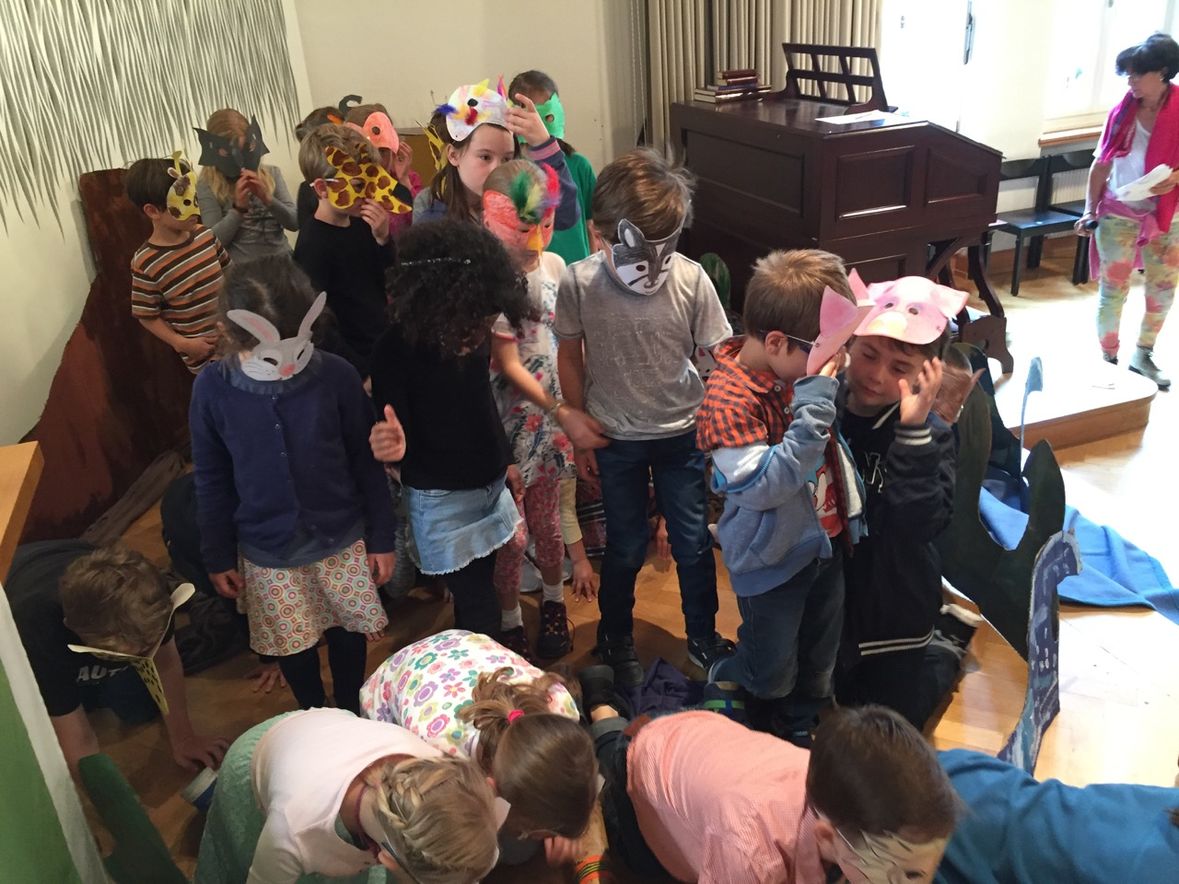 Wegen der unsicheren Wetterlage, fand der Freudenberg Gottesdienst in der evg.-ref. Kirche statt. Gespannt folgten wir der Noha wie er sein Boot erbaute und alle Tiere darauf einlud.