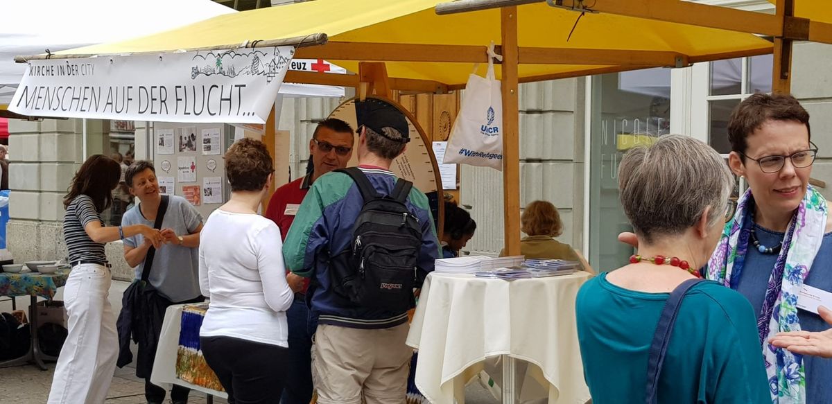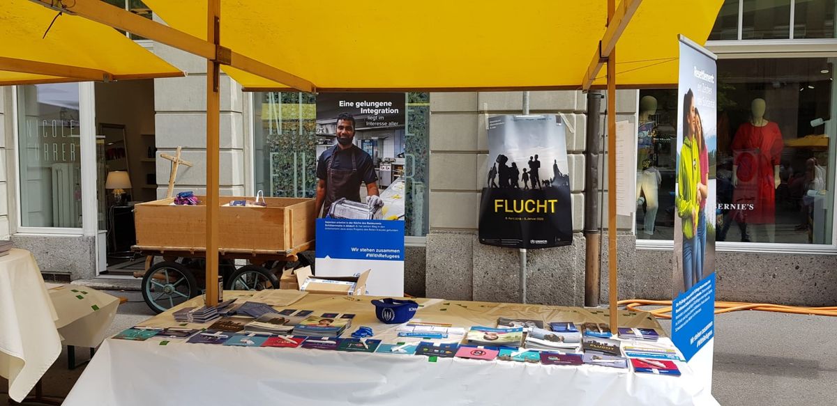 Am 15. Juni war die Flüchtlings- und Migrantenseelsorge am Fest der Kulturen mit der Kirche in der City wieder mit dem Infostand „Menschen auf der Flucht“. Eine bereichernde Erfahrung war die sehr angenehme und fruchtbare Zusammenarbeit mit Mitarbeitenden des UNHCR (United Nations High Commission for Refugees – zu Deutsch: Vereinten Nationen Hochkommissariat für Flüchtlinge). Unser Infostand fand rege Interesse bei zahlreichen Besucher*innen, die sich über die aktuelle Situation rund um das Thema Flucht und Flüchtlinge weltweit und in der Schweiz informieren wollten. Wir konnten viele intensive Gespräche führen dank vielen Freiwilligen, die den Stand mitbetreuten.