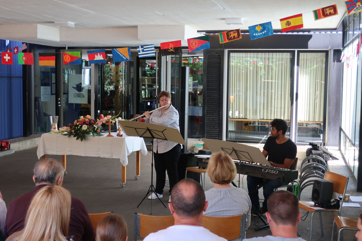 Der letzte Sonntag der Ferien ist immer ein besonderer Tag: die Ferien gehen zu Ende und ein neues Schuljahr beginnt. Beim traditionellen Gottesdienst zum Schulanfang auf dem Pausenplatz des Haldenschulhauses haben wir deshalb um Segen für das neue Schuljahr gebetet. Das Neue, das die Kinder und Lehrer*innen erwartet, ist wie ein Weg, den sie gehen müssen - mit Höhen und Tiefen, durch dunkle und helle Wegstrecken, steinig und angenehm, steil und eben. Monika Enz hat dies den Kindern in ihrer feinen und berührenden Art den mitfeiernden Kindern und Eltern veranschaulicht. Und wir durften in der Gemeinschaft spüren: Wir sind auf unserem Weg nie alleine, denn Gott ist mit uns! Die Musik von Beatrice Rogger (Querflöte) und Alexander Sennhauser haben dem Gottesdienst eine ferienhafte Leichtigkeit verliehen.