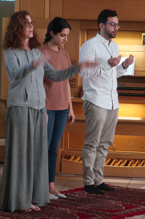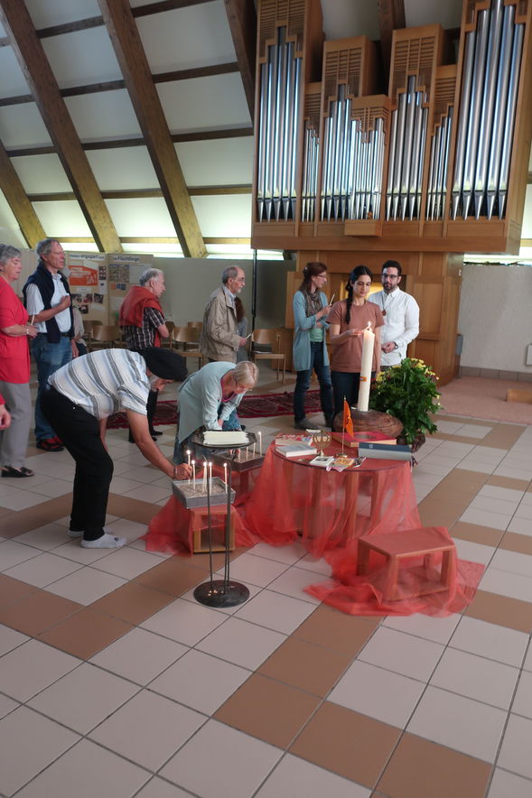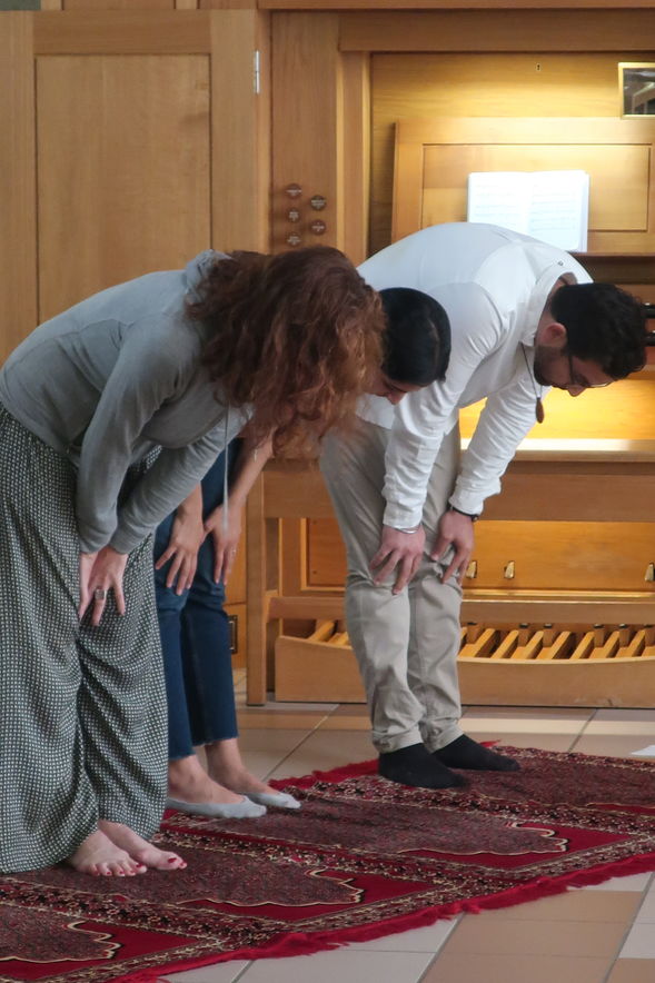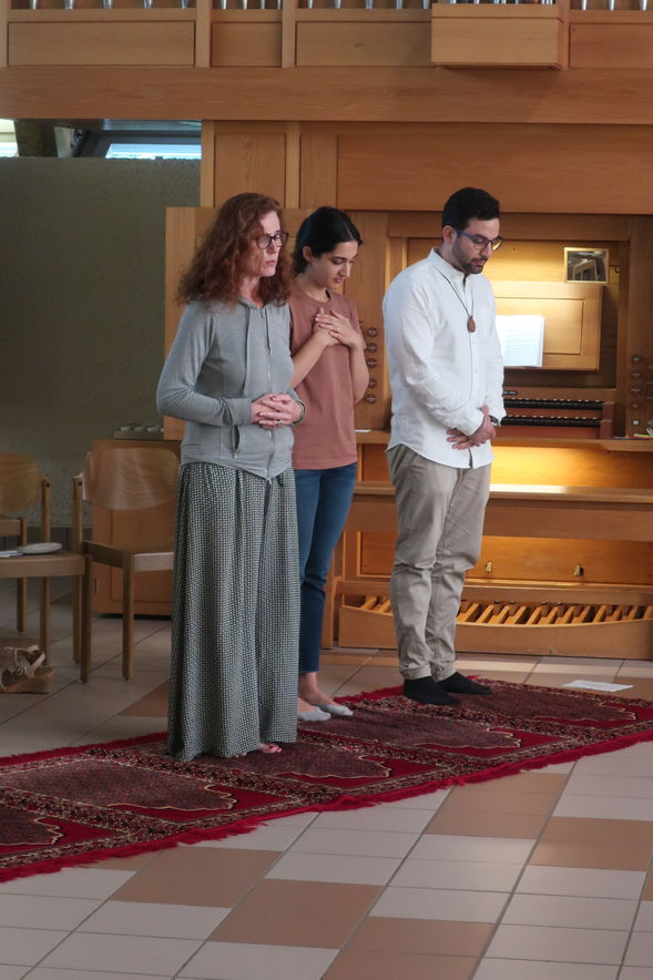Trotz des wunderbaren Sommerabends feierten einige Interessierte mit uns in der Haldenkirche das Interreligiöse Gebet. Es stand unter einem besonderen Thema: starke Frauen in den Religionen. Auch die Rolle von Frauen kam zur Sprache und Paralellen zwischen einigen Religionen wurden deutlich. Eine grosse Besonderheit stellt das muslimische Gebet dar: es wurde durch eine Vertreterin der offenen Moschee Schweiz durchgeführt.