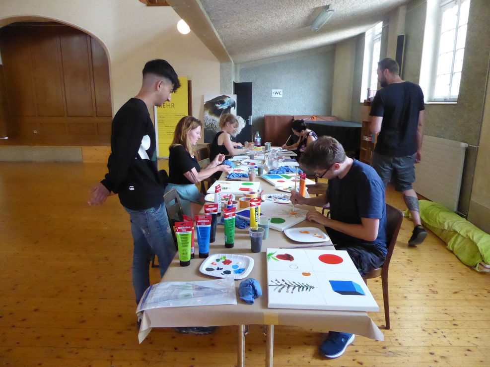 Ende Juli, während 10 Tagen haben wir, junge Menschen zw. 18 und 35J. aus der Schweiz, dem Iran und Österreich in der offenen Kirche zusammen kreativ gearbeitet. Unter der künstlerischen Leitung von Isabelle Rechsteiner, Schauspielerin, und Max Dane, Acrylkünstler, haben wir uns an verschiedenen Kunstformen wie Theater, Malen, Tanzen, Handpuppenspiel, etc. herangewagt. Die Kunst war dabei die universelle Sprache, die Hürden wie kulturelle und sprachliche Differenzen überbrückt und transformiert hat. Versteckte Talente sind zum Zug gekommen. Neues und Ungewohntes haben wir ausprobiert und jede und jeder hat sich in ihrer Art, mit seinen Ideen und seiner Sprache eingebracht und mitgeteilt. Durch das Verschmelzen der einzelnen Perspektiven und Stimmen haben wir so gemeinsame Werke entstehen lassen. Diese wurden schliesslich am 29. Juli der Öffentlichkeit präsentiert.