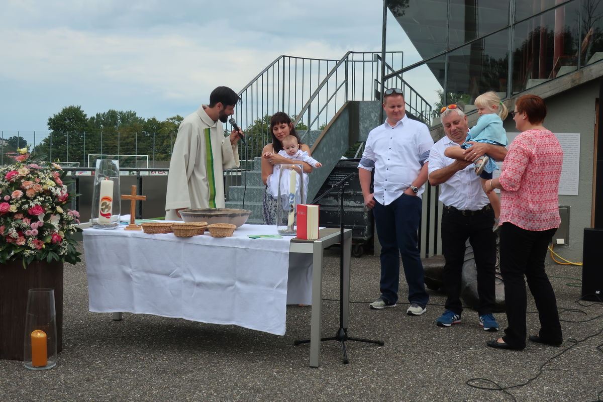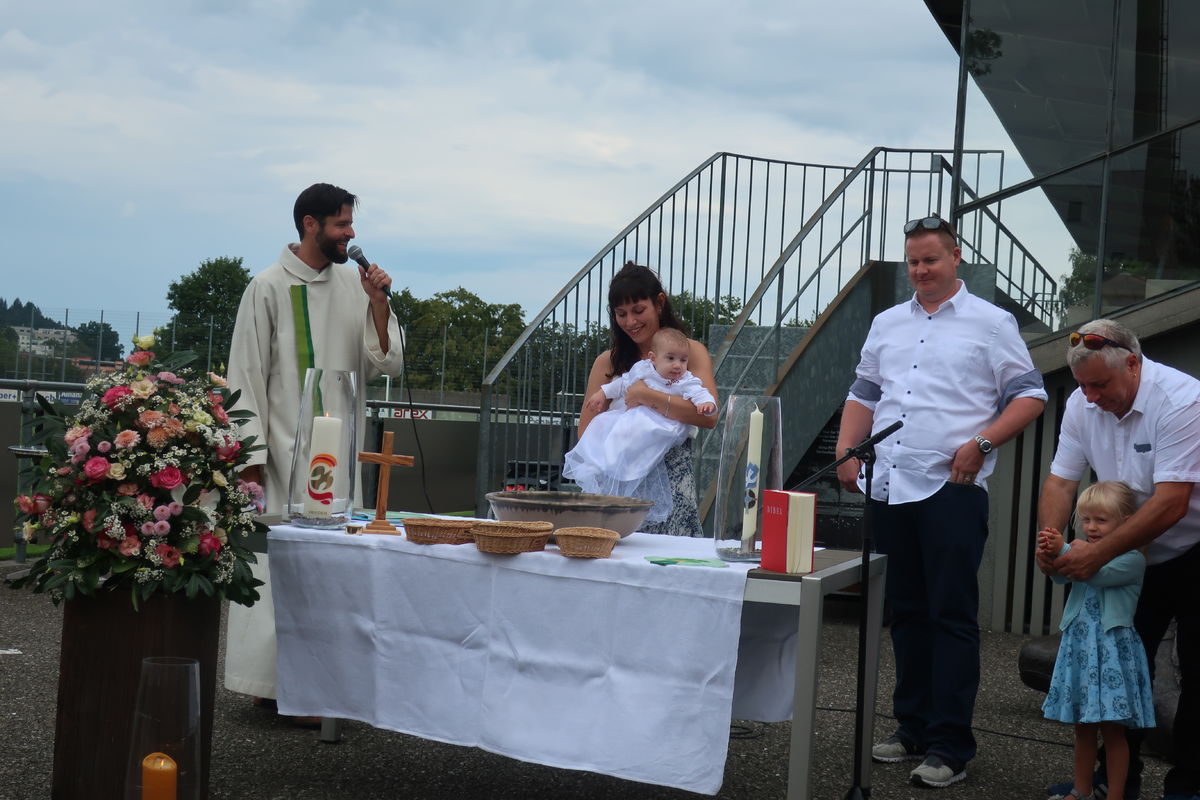 Glaube und Motivation gehören zusammen. Motivation spielt auch im Sport eine wichtige Rolle. Was der Trainer für ein Fussballteam, ist Jesus für uns Glaubende. "Gott ist unser Coach" - so lautete deshalb das Motto des diesjährigen Quartiergottesdienstes im Paul-Grüninger-Stadion. Diese Motto möge auch über der Familie und dem Leben von Laurin stehen, der im Rahmen des Gottesdienst getauft wurde.