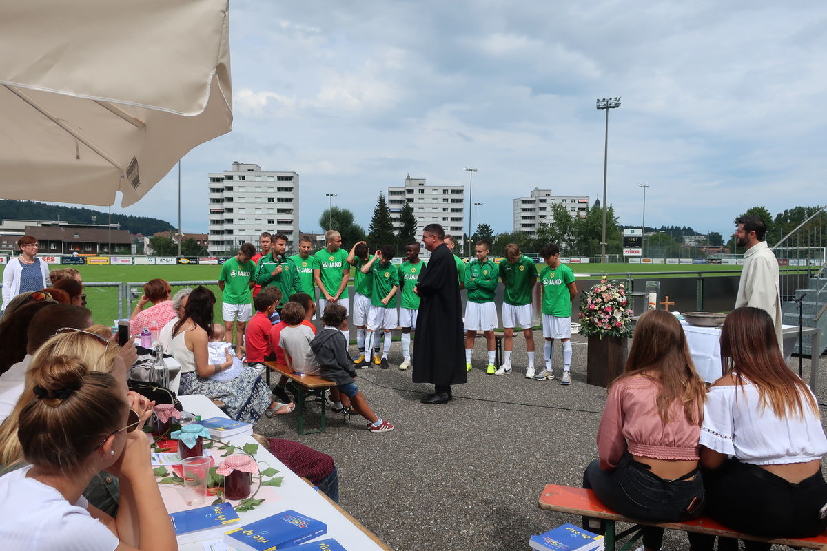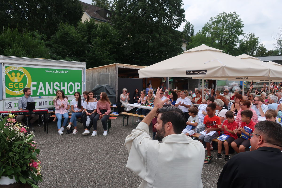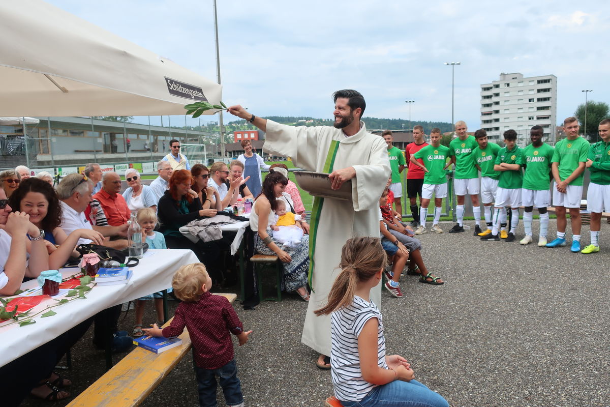 Viele Menschen aus St. Fiden, Grossacker, Neudorf, Stephanshorn und der Halden sind zu diesem Gottesdienst gekommen und haben sich dafür engagiert. Es ist grossartig, erleben zu dürfen, mit welch grosser Motivation sie sich einbringen! Dieser Gottesdienst und die Festwirtschaft lebt von der Beteiligung und der guten Zusammenarbeit vom SC Brühl mit den Kirchen im Quartier. Und natürlich durfte auch dieses Jahr die traditionelle Segnung eines Fussballteams nicht fehlen!