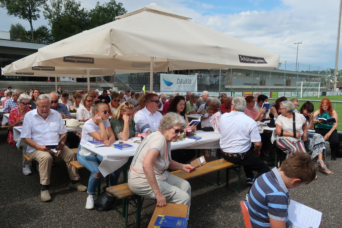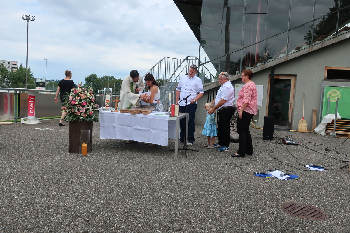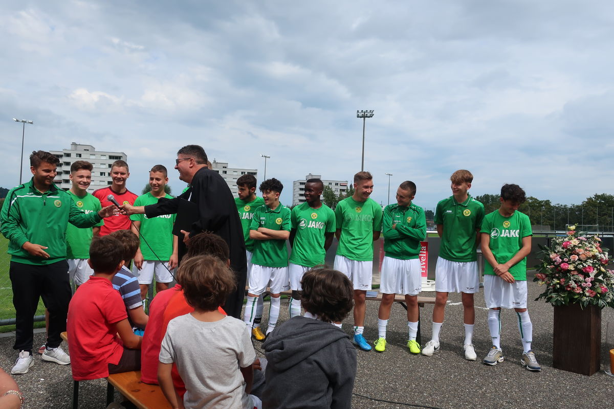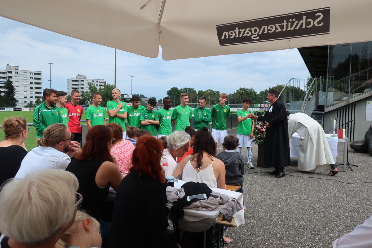 Viele Menschen aus St. Fiden, Grossacker, Neudorf, Stephanshorn und der Halden sind zu diesem Gottesdienst gekommen und haben sich dafür engagiert. Es ist grossartig, erleben zu dürfen, mit welch grosser Motivation sie sich einbringen! Dieser Gottesdienst und die Festwirtschaft lebt von der Beteiligung und der guten Zusammenarbeit vom SC Brühl mit den Kirchen im Quartier. Und natürlich durfte auch dieses Jahr die traditionelle Segnung eines Fussballteams nicht fehlen!
