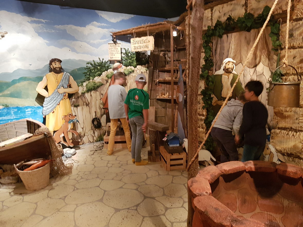 SchülerInnen ab der 4.Klasse fuhren mit Frau De Luca und Frau Bötschi nach Winterthur ins Sinnorama. Die Kinder konnten in der Ausstellung durch die Zeit reisen und auf sinnliche und originelle Weise mit der Entstehung und Ueberlieferung der Bibel sich befassen.