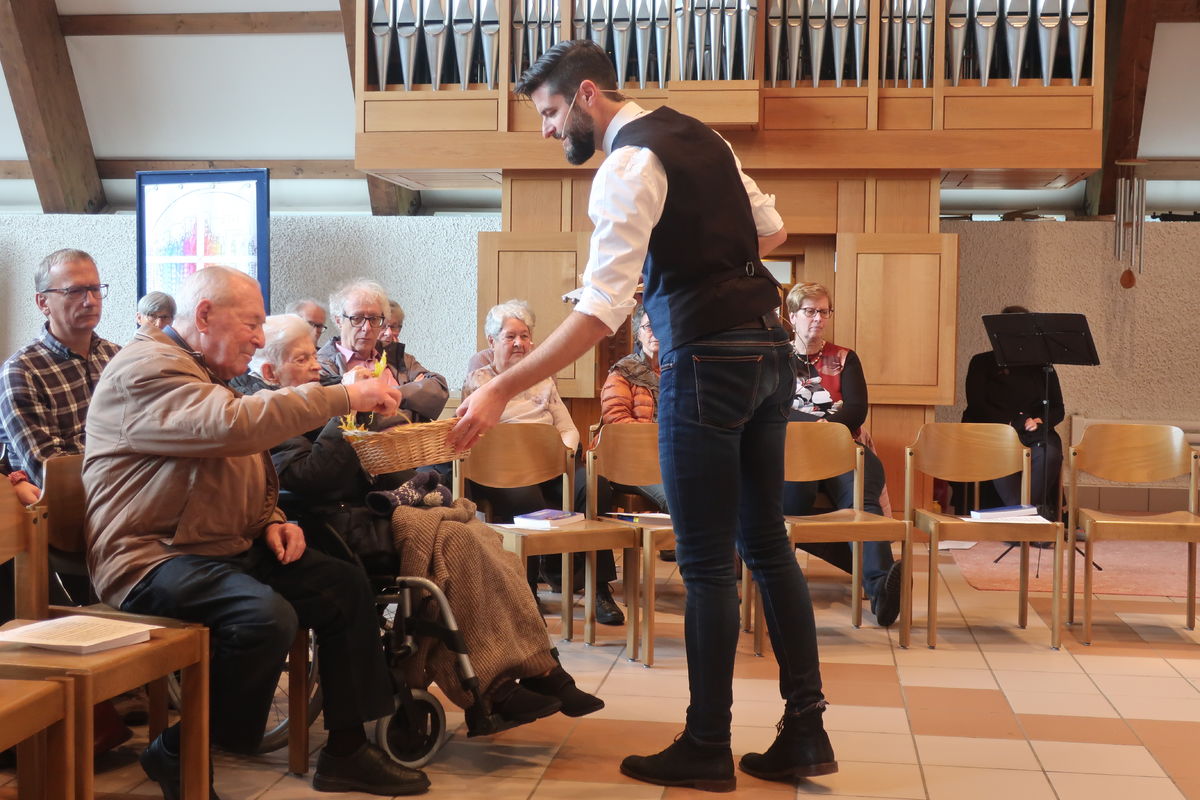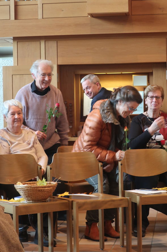 Alle Gemeindeglieder, die im Jahr 2019 einen runden Geburtstag feiern durften und dürfen, waren an diesem Sonntag ganz besonders herzlich zum Gottesdienst eingeladen. Annina Stahlberger, Flöte, und Norbert Schmuck, Orgel, zauberten mit ihrem grossen Können und der wunderbar ausgewählten Musik eine Fest-Atmosphäre in die Haldenkirche und gaben den Jubilar*innen mehr als ein Geburtstagsständchen. Und einige der Jubilar*innen sind gekommen: 40-Jährige, 50-Jährige, 60-Jährige, 70-Jährige, 80-Jährige und 90-Jährige waren vertreten. Alle Mitfeiernden waren dazu eingeladen, gemeinsam über ihr Leben und die Veränderungen und Ziele, die es mit sich bringt, nachzudenken. Das bunte Herbstblatt, das es derzeit noch zuhauf gibt, stand symbolisch für das Leben an sich als Zeitraffer. Und vom Herbstblatt gibt so einiges zu lernen, um die Prozesshaftigkeit des Lebens annehmen zu können. Natürlich durfte am Schluss auch der Apéro nicht fehlen, beim dem alle auf und mit den Jubilar*innen anstossen konnten.