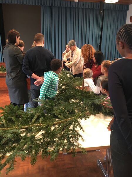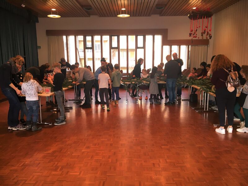 Anschliessend haben wir Adventsdekorationen gestaltet. Für die Kinder ist der selbstgebundene Adventskranz etwas ganz Besonderes – vor allem wenn sie mit ihren Eltern zusammen den Kranz binden dürfen.
