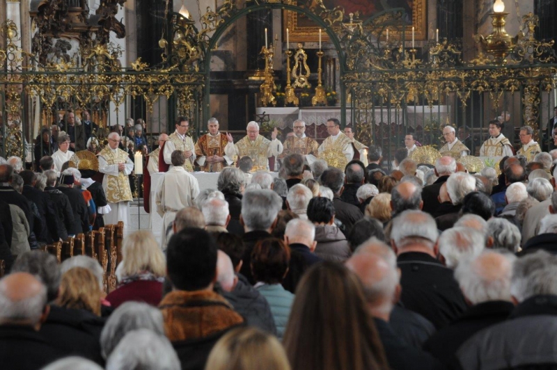 Das Bistum St. Gallen feierte gestern nach alter Tradition seinen Patron Gallus. Im Pontifikalamt mit Bischof Markus Büchel, dem em. Bischof Ivo Fürer und Festprediger Urban Federer sowie vielen Konzelebranten aus aller Welt waren Schiff wie Chorraum der Kathedrale fast bis zum letzten Platz besetzt.„Wenig mehr Mitfeiernde hat es höchstens noch in der Christmette zu Weihnachten“, stellte eine Gottesdienstbesucherin erfreut fest. Sie deutete dies als Zeichen, „dass der Gallustag in Stadt und Kanton St. Gallen den Menschen auch aus kirchlicher Sicht sehr wichtig ist“. In der ehemaligen Stiftskirche der St. Galler Benediktiner war Abt Urban Federer, Benediktinerkloster Einsiedeln, diesjähriger Festprediger. Gallus habe durch sein glaubwürdiges Leben und Glaubenszeugnis die Menschen angesprochen, sagte Abt Urban. „Er war ein von dem irischen Mönchstum geprägter Asket, ein Mensch, der auch Konflikte und Glaubenskrisen erlebte und vielleicht gerade deshalb, durch seine Nähe zum Volk überzeugend und glaubwürdig wirkte“. Der Abt betonte, dass es am Gallustag nicht in erster Linie um den Heiligen Gallus gehe, sondern vielmehr um die persönliche Berufung aller Christinnen und Christen zur Gottesfreundschaft, die es immer wieder neu zu entdecken gebe. Teile der Messe wurden gestern in Italienisch gesprochen, da eine grosse Pilgergruppe aus Italien angereist war. In ihrem Seelsorgegebiet liegt das Dorf San Gallo. Die Dommusik unter der Leitung von Domkapellmeister Hans Eberhard gestaltete den Gottesdienst mit den wunderbaren Klängen der Messe in C-Dur von Ludwig van Beethoven und gregorianischem Choral. Traditionell sang die Schola am Fest des Bistumspatrons die Gallus-Sequenz von Notker Balbulus und zum Abschluss ertönte auch gestern das Galluslied. Nach dem Gottesdienst ging für viele Gläubige der Tag mit dem traditionellen Olma-Besuch weiter. (sar./inf.)