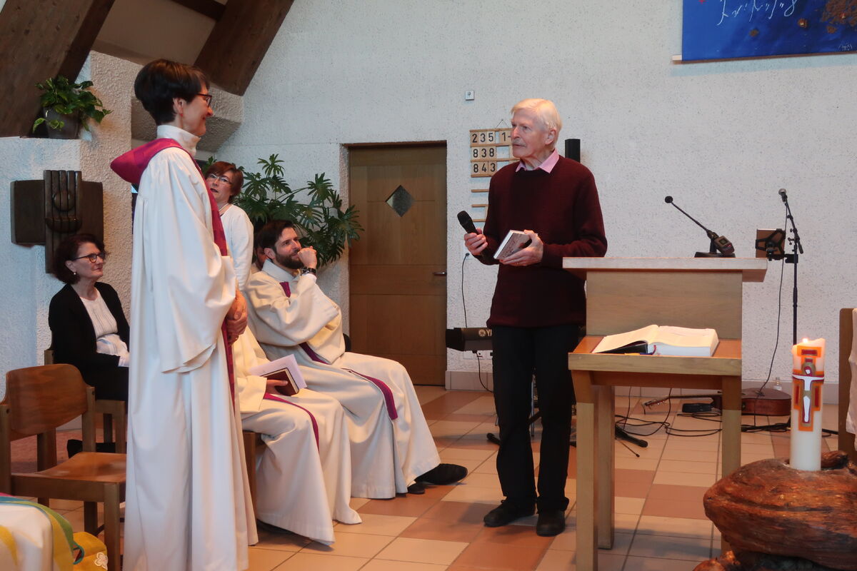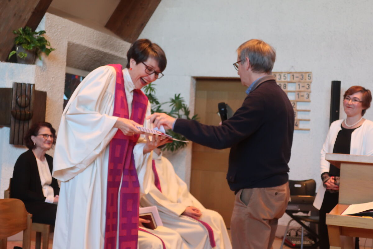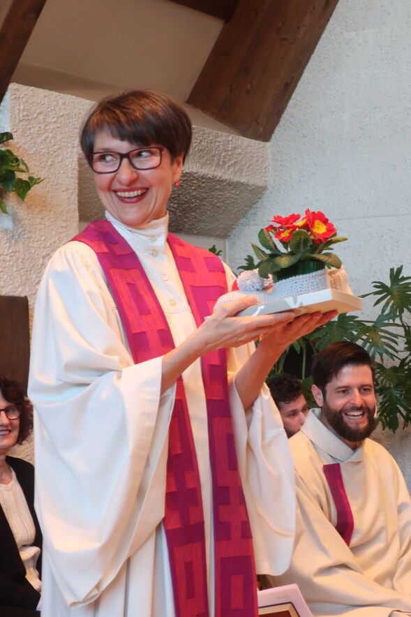 Am Sonntag, den 15. März, haben wir uns in einem bunten Gottesdienst von unserer Pfarrerin Birke Horváth-Müller gebürend verabschiedet. Vertreter*innen von den vielen verschiedenen Gruppierungen der Halden waren anwesend, um ihr für ihr beherztes und engagiertes Wirken "Danke" zu sagen. Einen fulminanten Abschluss des Festgottesdienstes boten Norbert Schmuck an der Orgel und Alexander Sennhauser am Klavier. Sie spielten das Concerto für 2 Orgeln von Giovanni Bernardo Lucchinetti. Es war nicht nur für Birke eine Überraschung.