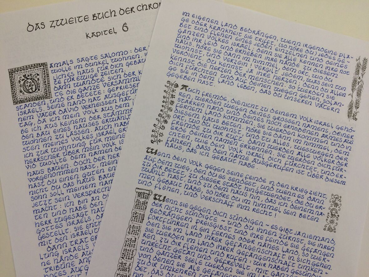 Sechs Wochen nach dem Projektstart der St.Galler Corona-Bibel sind schon ca. 90% aller Kapitel der Bibel an Schreiberinnen und Schreiber vergeben. Das Entgegennehmen und Sortieren der über 1000 Zuschriften sowie das Überprüfen, ob alle gebuchten Kapitel auch wirklich geschrieben wurden, wird das Corona-Bibel-Team fordern.
