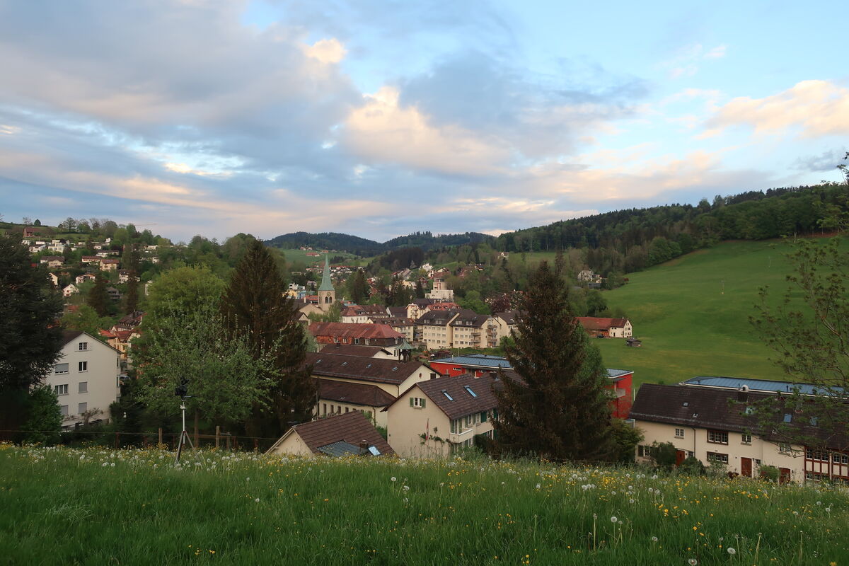 Am Ostermontag machte Pfarrerin Marilene Hess vor dem Kloster Notkersegg den Anfang. Und am ersten Sonntag nach Ostern rezitierte Wisi Ebneter vom Dach der Haldenkirche einen von ihm selbst zusammengestellten Stadtsegen, welcher sich am Innerhoder Alpsegen orientiert, wie er seit 1984 im Alpstein gerufen wird. Nachdem am letzten Sonntag Matthias Wenk den Stadt- und Land-Sägä vom Grossacker aus rief, gestaltete und sang Georg Schmucki an diesem Sonntag-Abend seinen Betruf nach Texten von Dorothee Sölle. Pfr. Markus Unholz stellte den Glockenturm auf der Kachelstatt St. Georgen für den Betruf zur Verfügung.