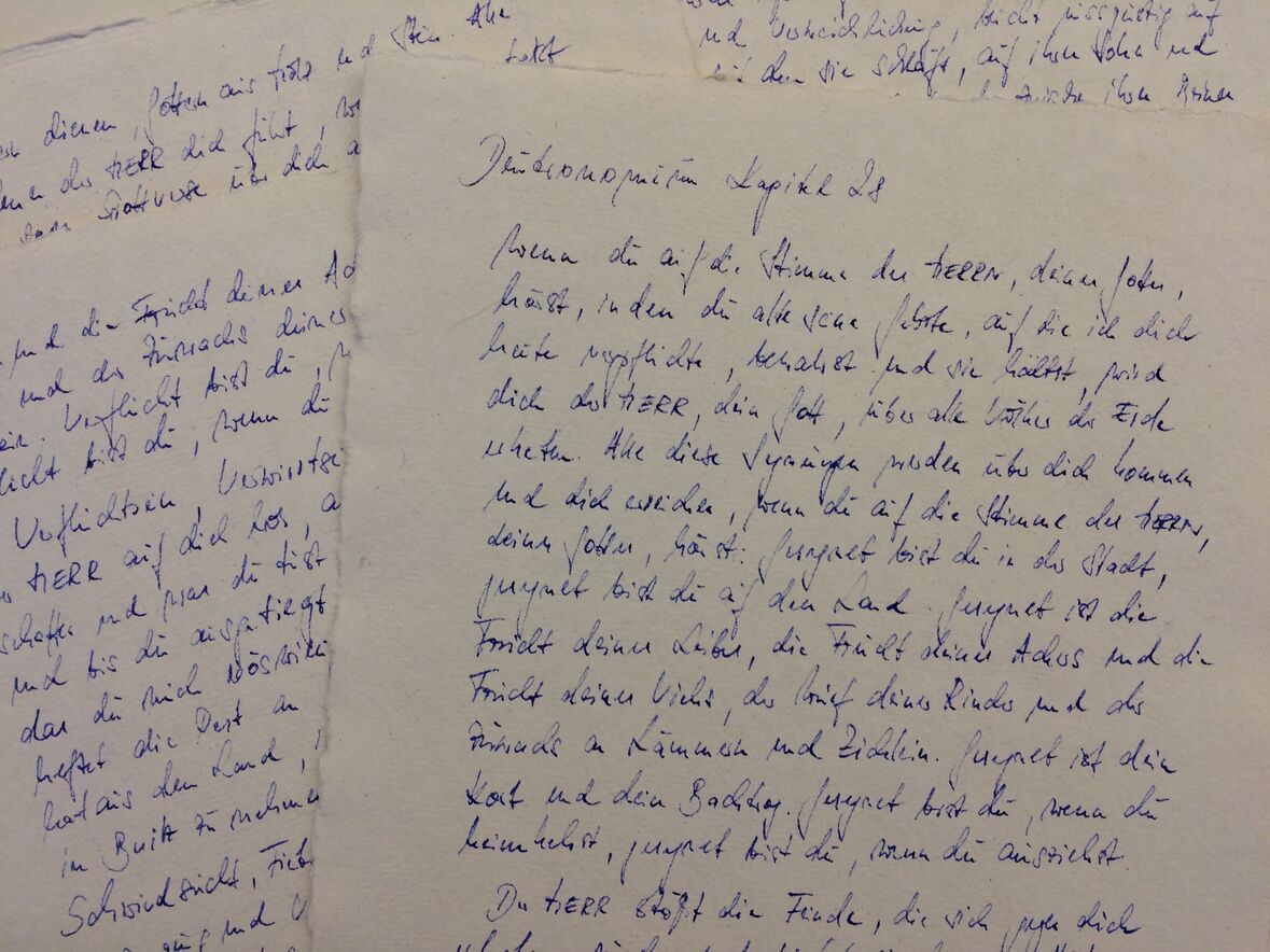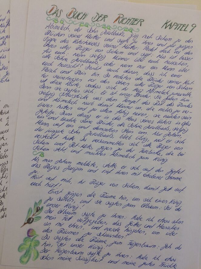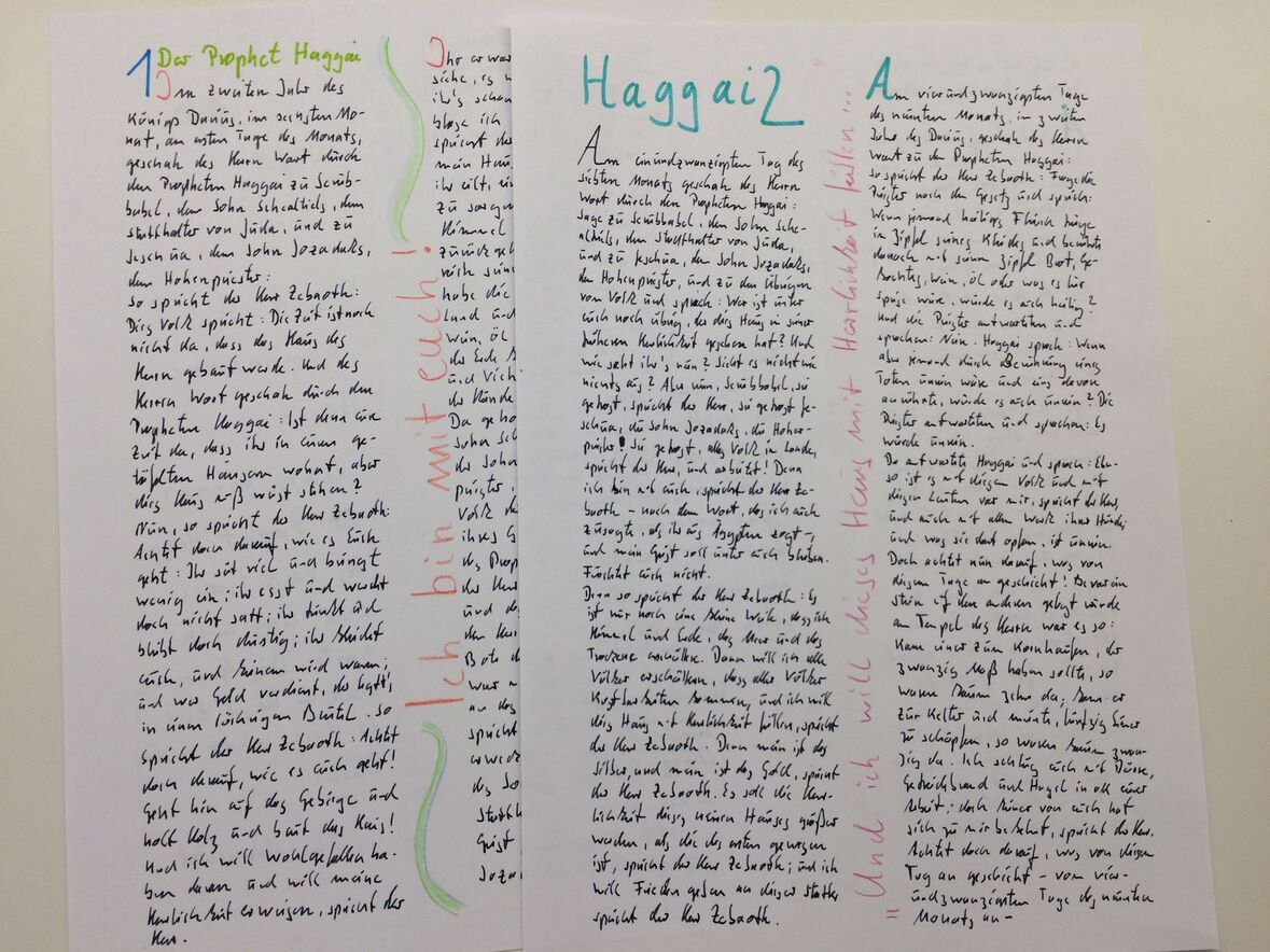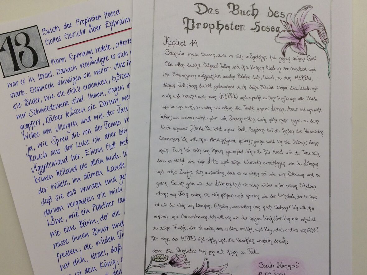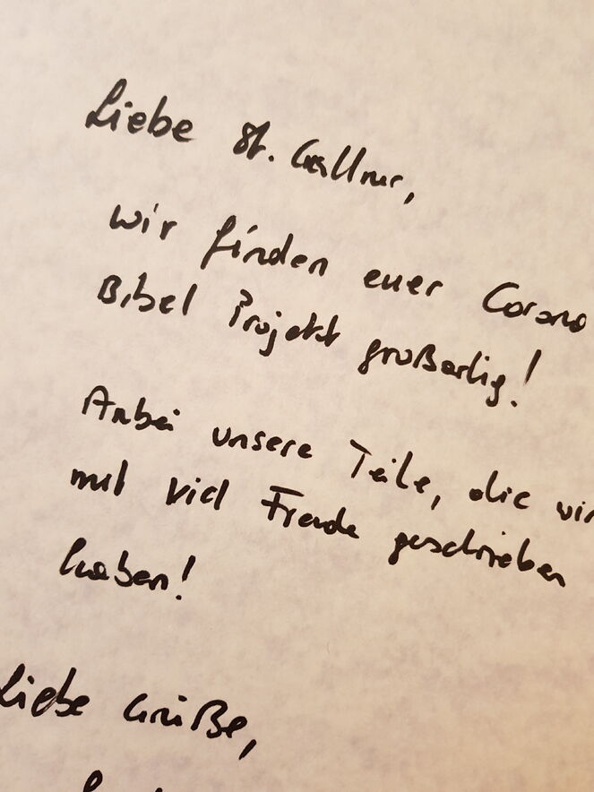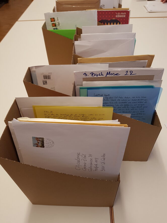 Noch knapp zwei Wochen sind es bis Pfingsten, dem Abgabedatum der handgeschriebenen Texte aus der Bibel. Über 800 Personen schreiben bereits mit und es sind nur noch wenige Texte frei, die abgeschrieben werden wollen. Gebucht werden könnten die Texte auf www.kathsg.ch/coronabibel, wo auch das ganze Projekt beschrieben ist.