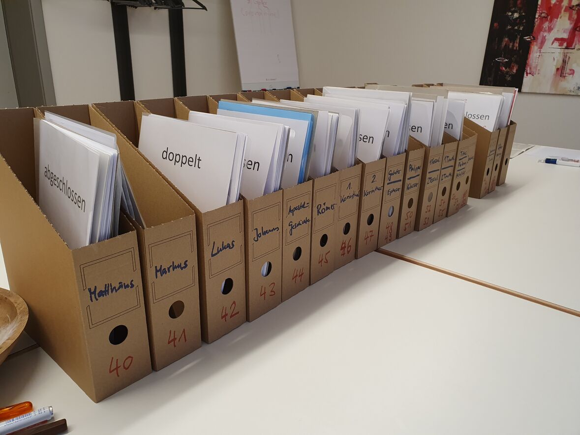 Täglich stapeln sich nun bereits die fertigen Handschriften, die von Freiwilligen einsortiert werden. Einige der schönsten Exemplare machen wir hier sichtbar.
