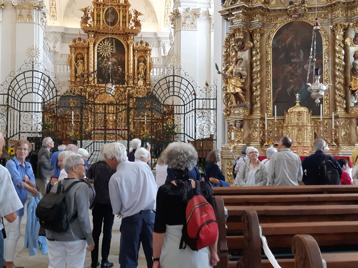 Zusammen mit dem ökumenischen Time-out-Programm konnte der Verein "Freunde der Orgel Sta. Maria Neudorf" 40 Personen nach Disentis zum Orgelerlebnis mitnehmen. Dort konnte man nicht nur die Kirche bewundern, die nach der kürzlich abgeschlossenen Renovation prächtig strahlt. Maja Bösch, Hauptorganistin im Neudorf, stellte zusammen mit dem Disentiser Organisten Bruder Stefan sowohl die Chororgel als auch die eindrücklich restaurierte und erneuerte Hauptorgel von Franz Gattringer vor. Da gab es natürlich manchen Ohrenschmaus zu hören, aber auch viel Wissenswertes über ein erstaunliches Instrument, in dem nicht nur viel alte Handwerkskunst steckt, sondern auch einiges an moderner Technik. Notfalls würde diese Orgel auch ohne Organisten Musik machen... Den beiden Orgel-Fachleuten machte der Erfahrungsaustausch sichtlich Spass, und allen anderen sowieso.