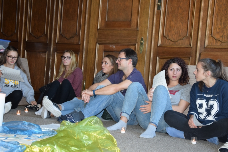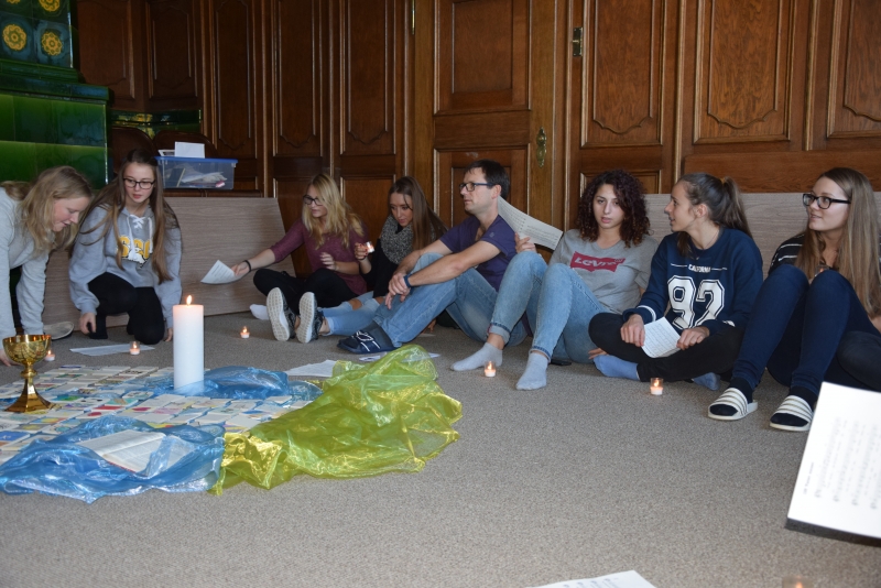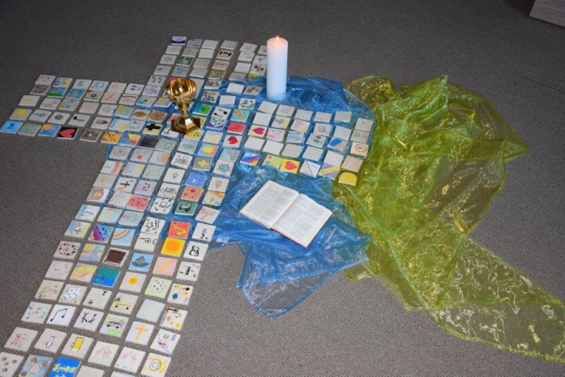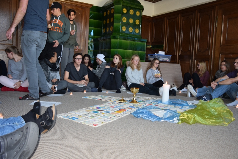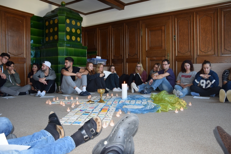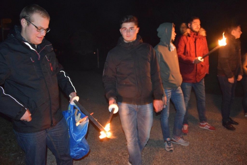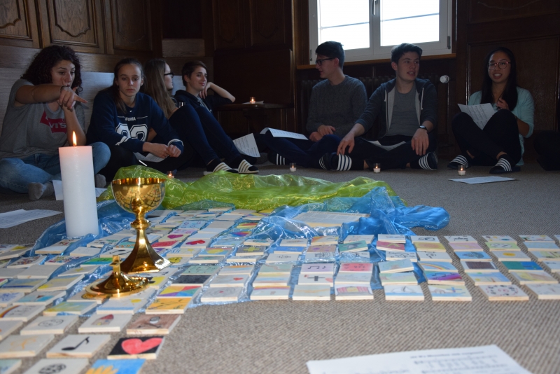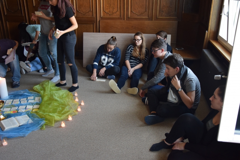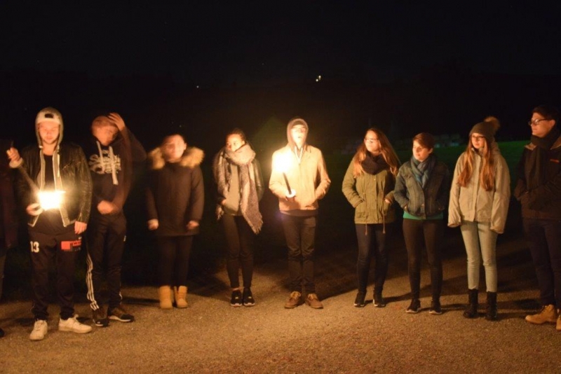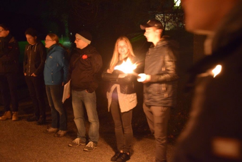Knapp 35 Firmkandidatinnen und -kandidaten verbrachten am 7./8. November 2015 das Firmweekend im Lagerhaus "Alpstein" in Teufen. Neben der Auseinandersetzung mit den eigenen Werten, dem eigenen Lebensweg und Gottesbild engagierten sich die jungen Erwachsenen in der Küche und erlebten beim Fackelmarsch einen herrlichen Sternenhimmel. Auf dem "Gipfel" angekommen genossen Sie die Aussicht und machten die Erfahrung einander die Hände zu "salben" und einen Wunsch auf den weiteren Weg weiterzugeben und zu erhalten. Beim Abschlussgottesdienst wurden die quadratischen "Lebenstafeln" der Firmlinge ausgelegt und so entstand ein grosses Kreuz als Symbol der Gemeinschaft untereinander und mit Gott.