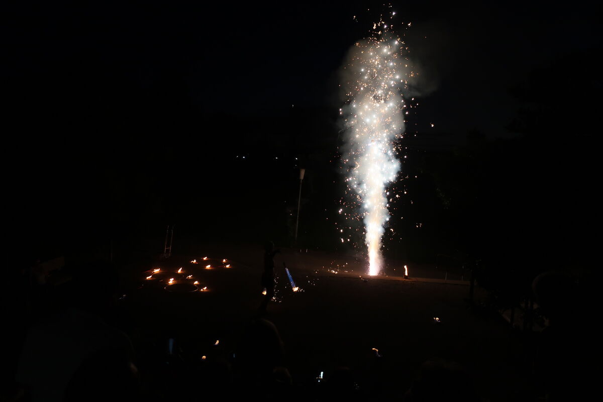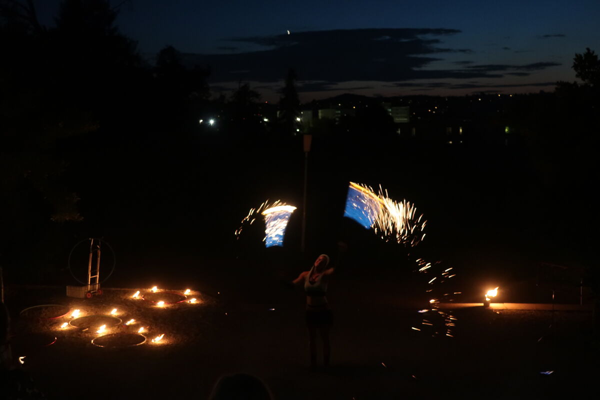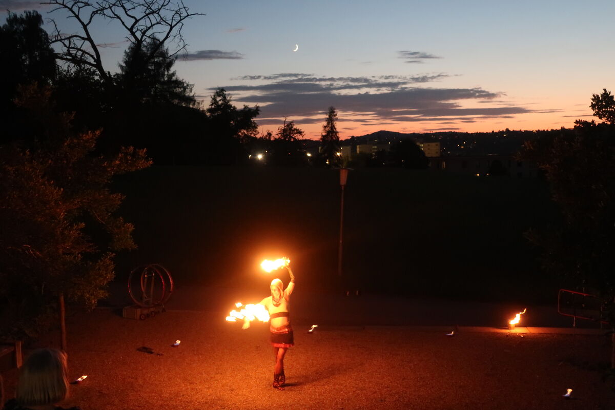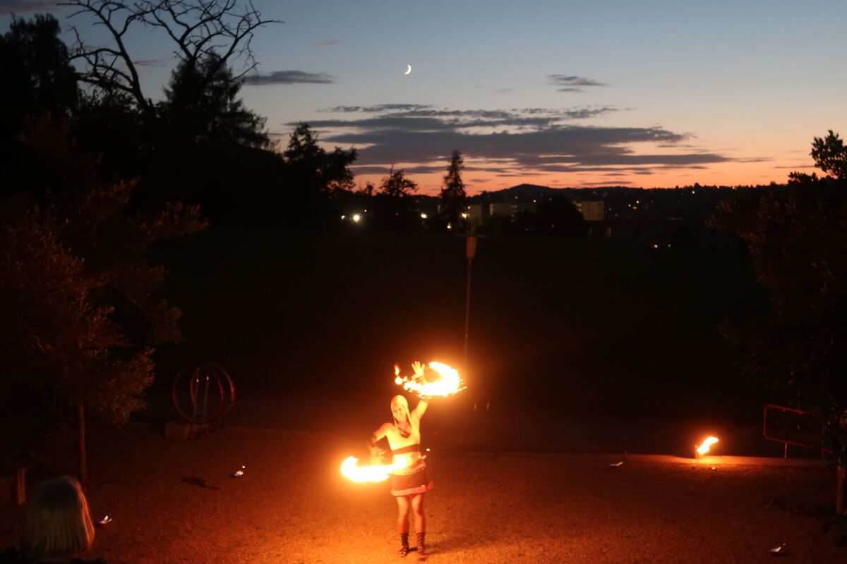Corona-konform sagte das Team der ökumenischen Gemeinde Halden am Freitag-Abend "Merci" - Höhepunkt war eine Feuershow im Freien bei Dämmerung.