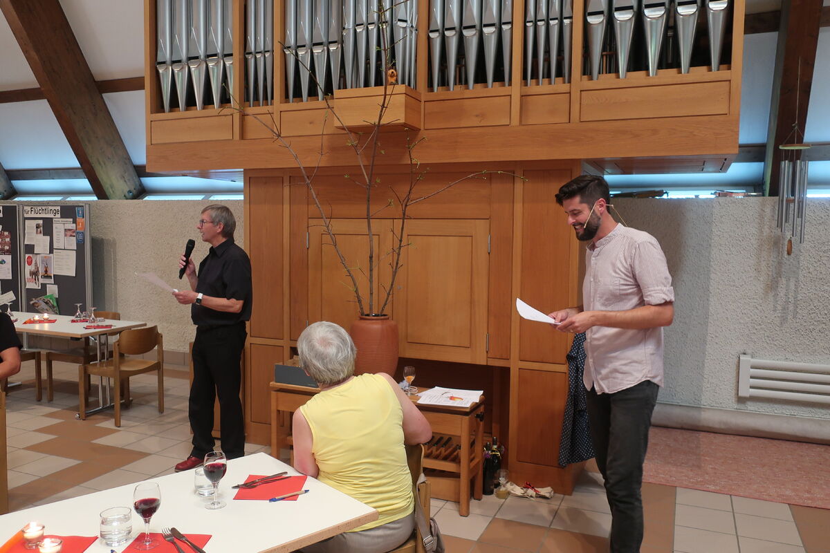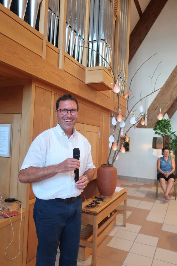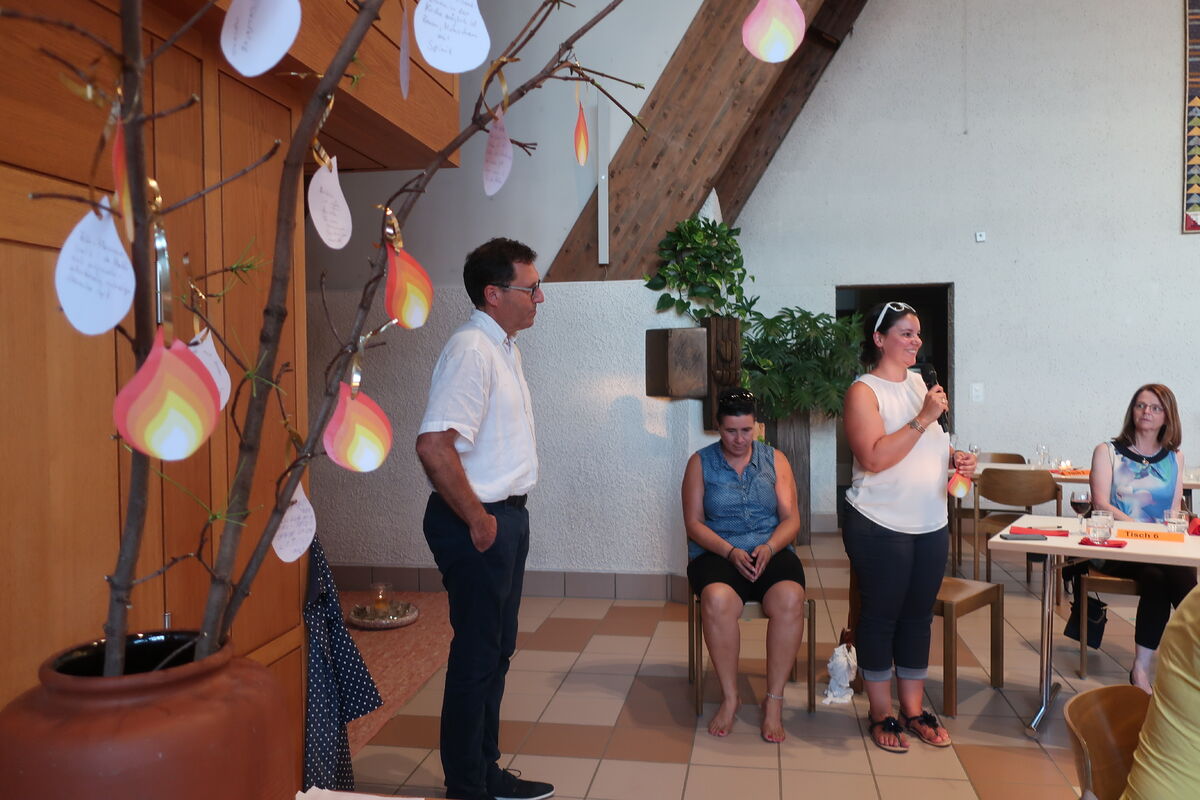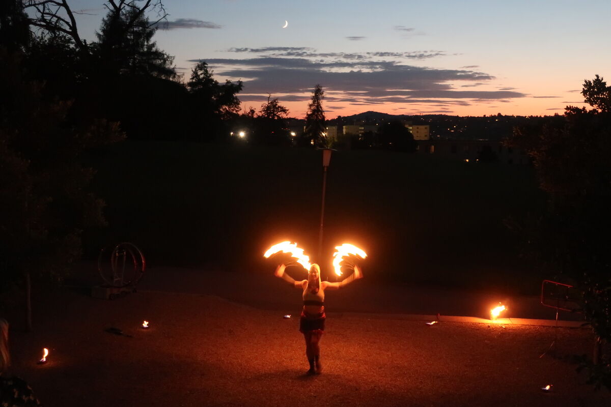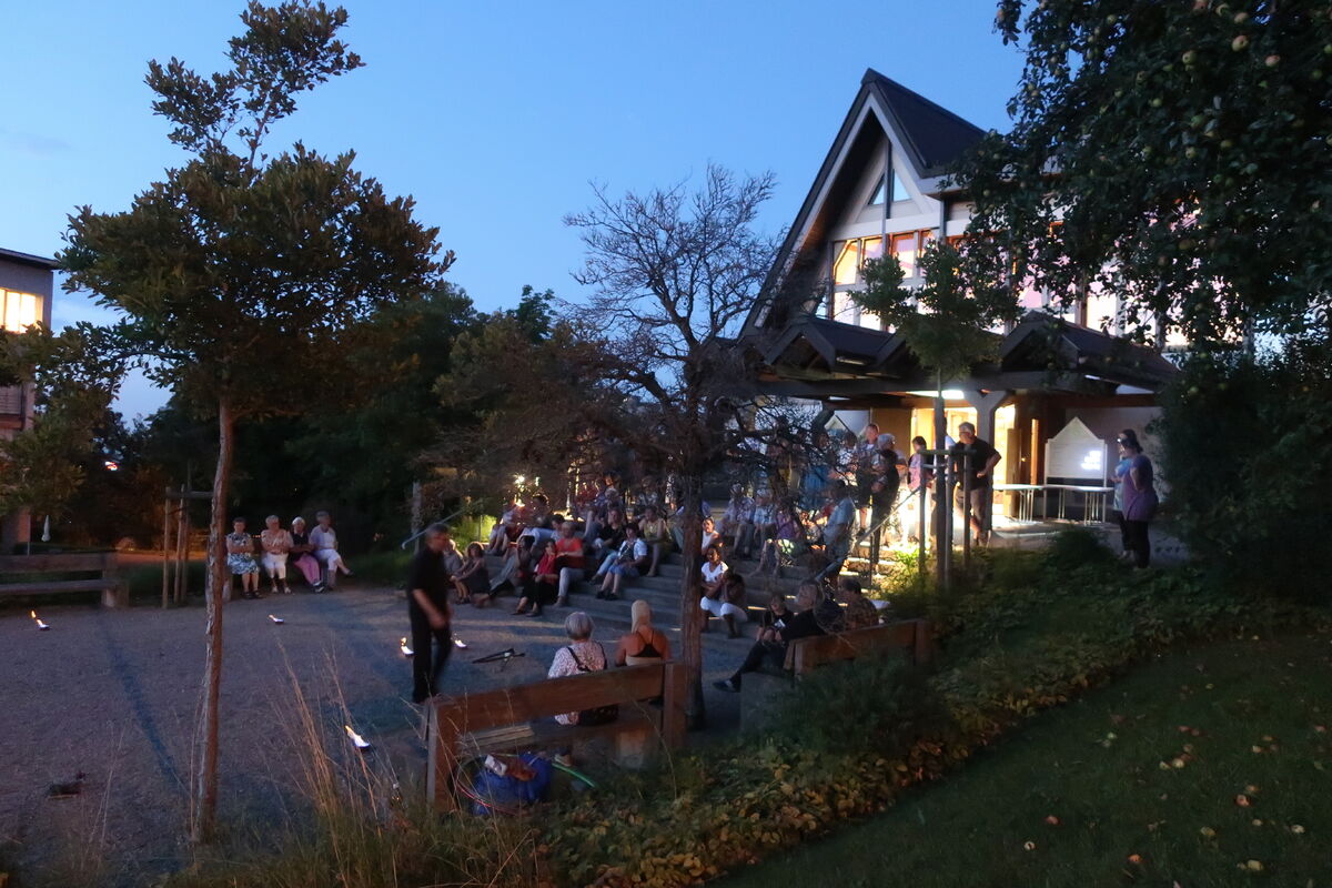 Corona-konform sagte das Team der ökumenischen Gemeinde Halden am Freitag-Abend "Merci" - Höhepunkt war eine Feuershow im Freien bei Dämmerung.