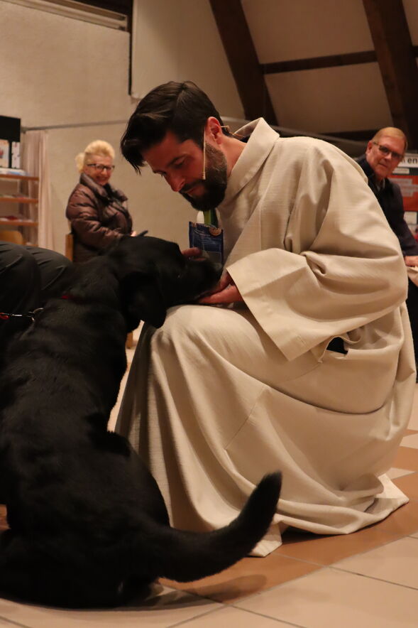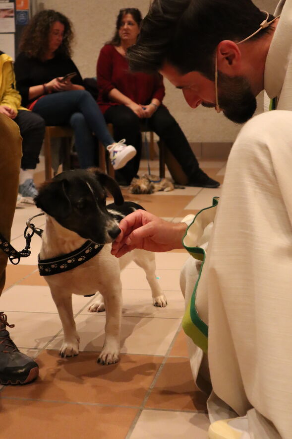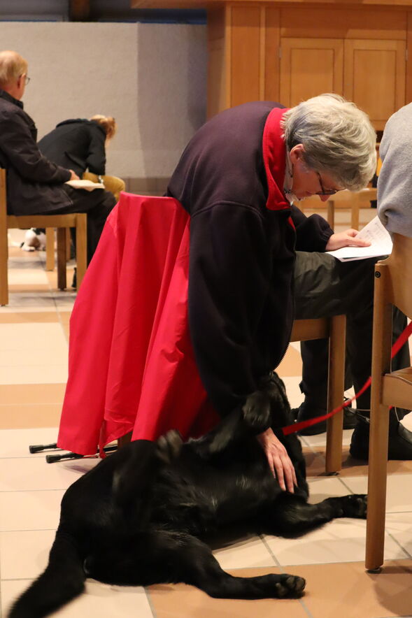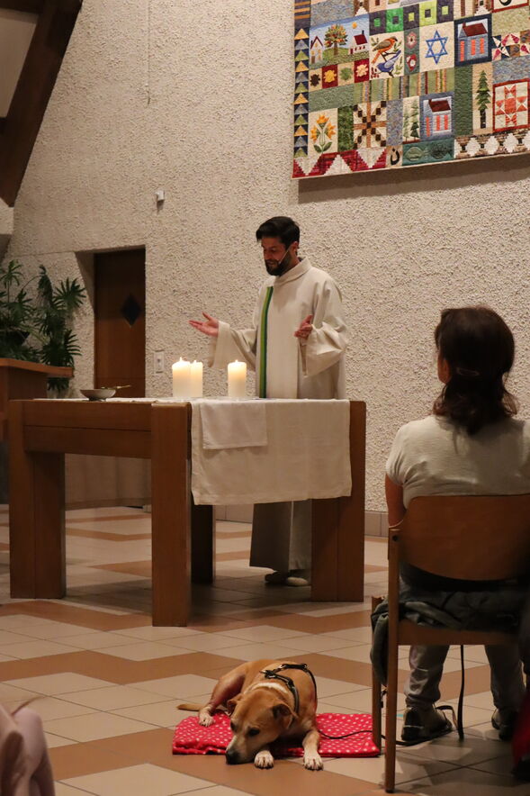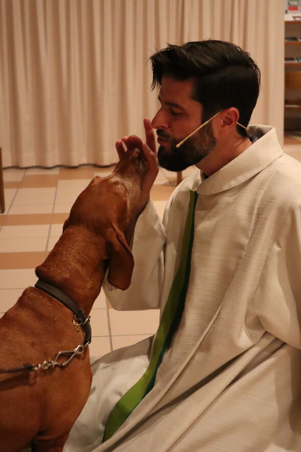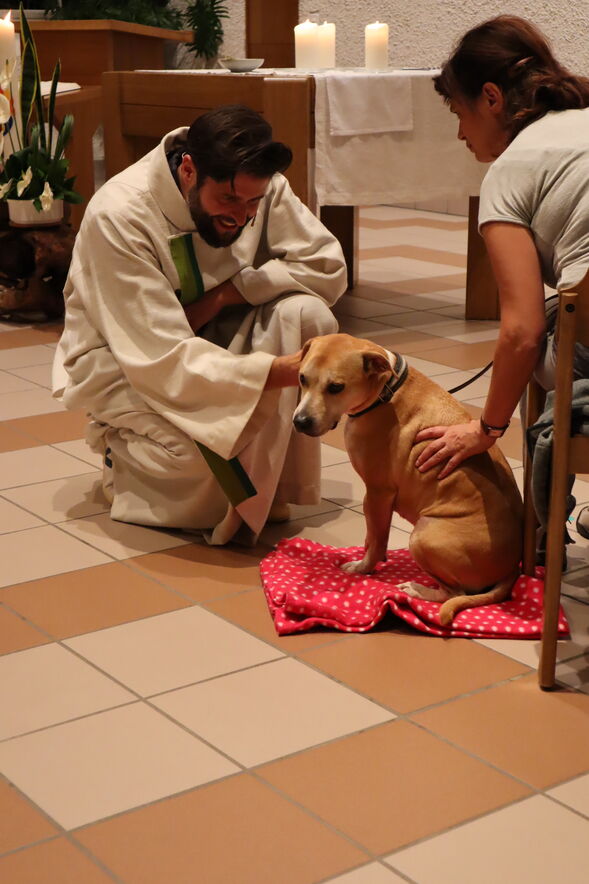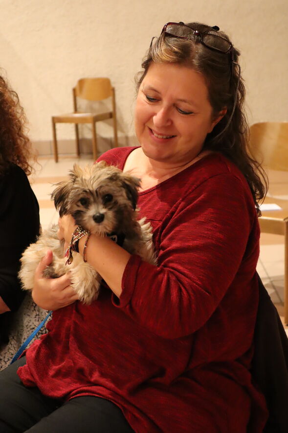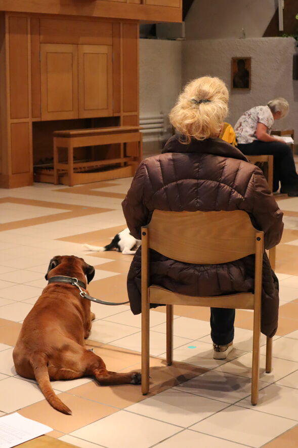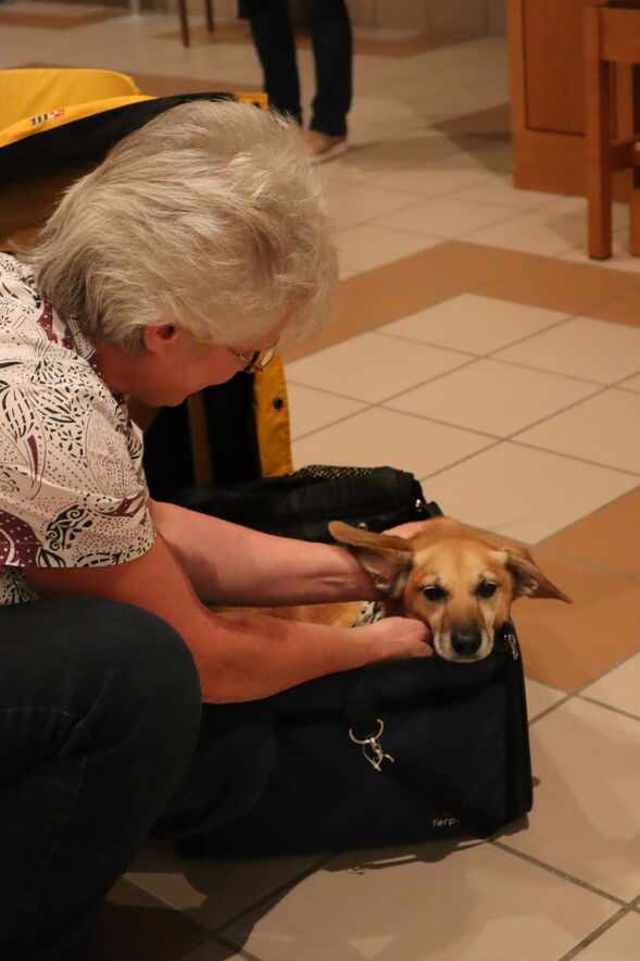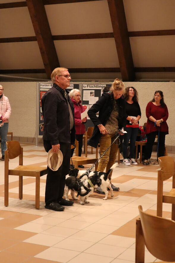 Einige Vierbeiner und die dazu gehörenden Menschen fand sich am Abden des 2. Oktobers in der Haldenkirche zu einem Gottesdienst mit Tierlisegnung ein. Ideengeber dazu war der Hl. Franz von Assisi, der eine legendäre Beziehung zu Tieren pflegte. Seine tiefe Erkenntnis, dass Tiere und Menschen einander Geschwister sind, weil sie Geschöpfe sind, leitete den Geist dieses Gottesdienstes. Gerne empfingen die anwesenden Tiere und Menschen den Segen Gottes - und für die Vierbeiner gab es obendrein noch ein Hundeguddi.