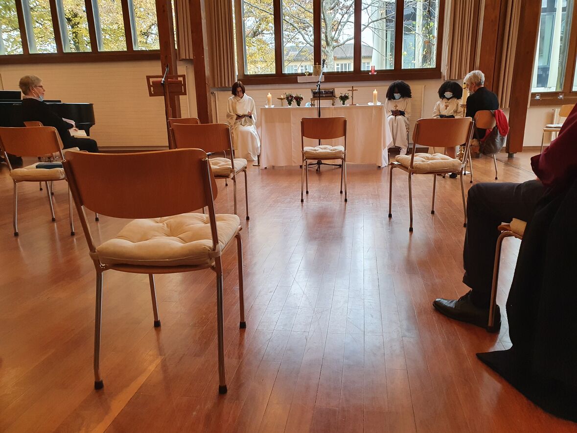 Aussergerwöhnliche Zeiten erfordern aussergewöhnliche Massnahmen. Da derzeit maximal 50 Personen an einem Gottesdienst teilnehmen dürfen und die Angehörigen der im letzten Jahr Verstorbenen persönlich eingeladen worden waren, wurden die Gottesdienste zu Allerheiligen jeweils parallel zu jenen in den Kirchen Neudorf und St.Fiden auch noch im Begegnungszentrum bzw. im Pfarreiheim angeboten. Mehrere dutzend Personen liessen sich darauf ein und gedachten auch dort der Verstorbenen, umrahmt von Gesang und Musik.