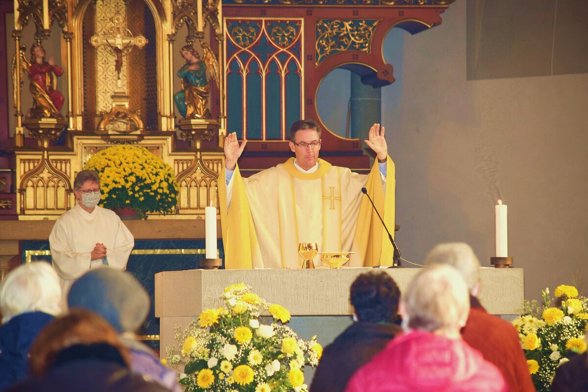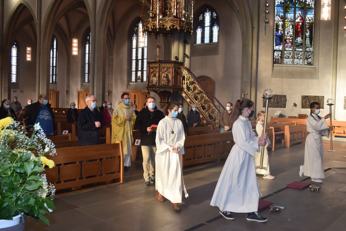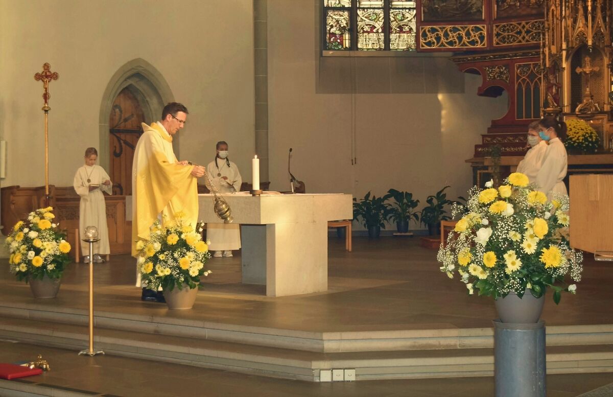 Die Sorge für Kranke und Schwache, das stille Zeugnis des Glaubens, wo ein Einfügen in weltliche Gegebenheiten nötig ist und das feste Vertrauen, dass Gott für uns die Freude nicht versiegen lässt - diese Botschaft des heiligen Otmar hat Beat Grögli, Pfarrer und ehemaliger Vikar der Pfarrei, am Patrozinium von St. Otmar in die aktuelle besondere Situation hinein formuliert. Ein Kirchenfest - in gewohnter Festlichkeit begangen - in ungewöhnlicher Zeit für eine Pfarrei jedoch ein höchst aktueller Auftrag!