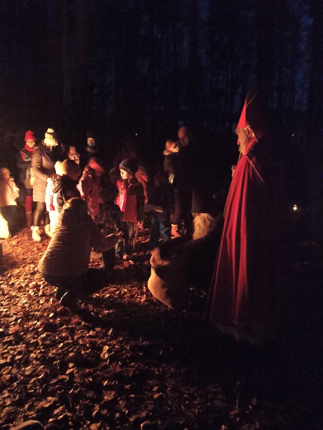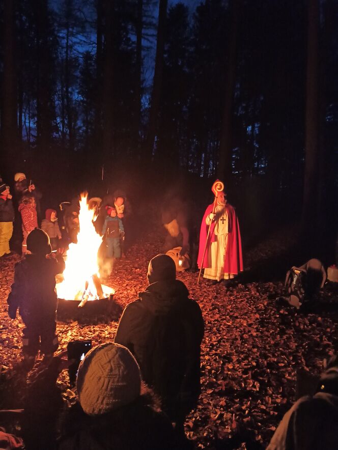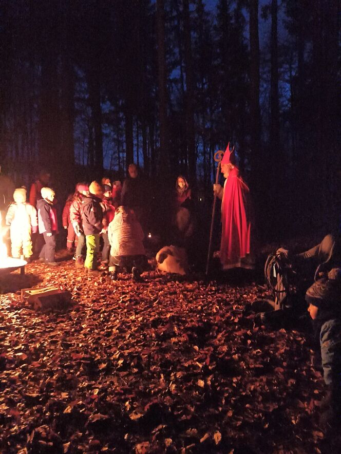 Auch dieses Jahr kam der Samichlaus wieder in den Wald, um den Kindern aus den Quartieren Grossacker, St. Fiden, Neudorf, Stephanshorn und Halden wieder kleine, feine Geschenkli zu bringen. Die Kinder begrüssten den Samichlaus mit einem prasselnden Lagerfeuer und Sprüchen, Liedern und Musikstücken.